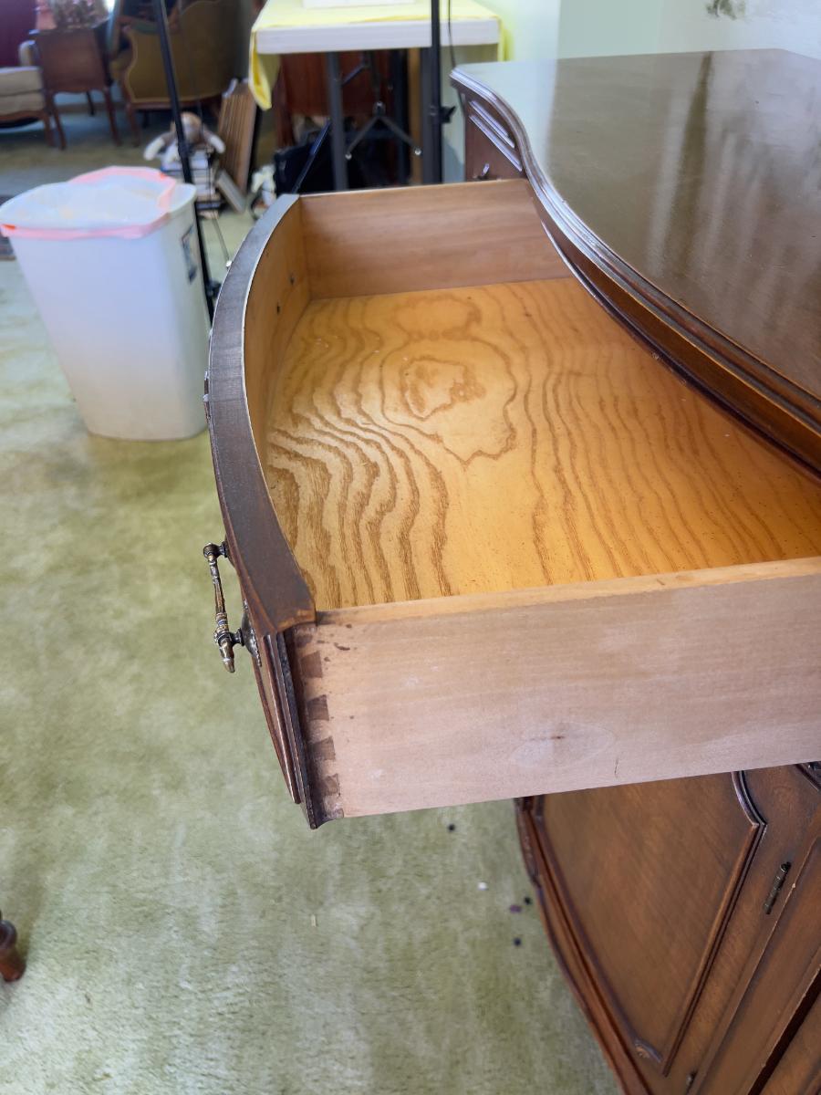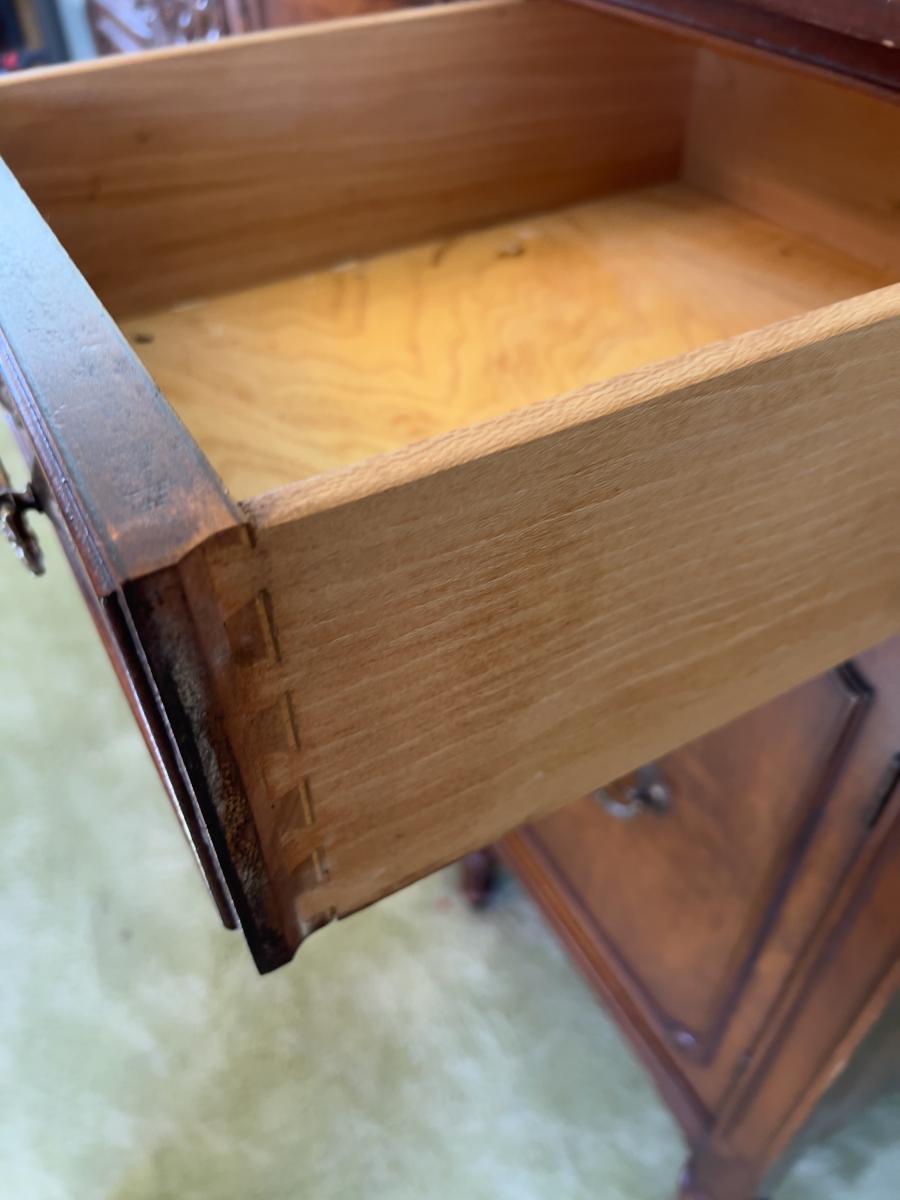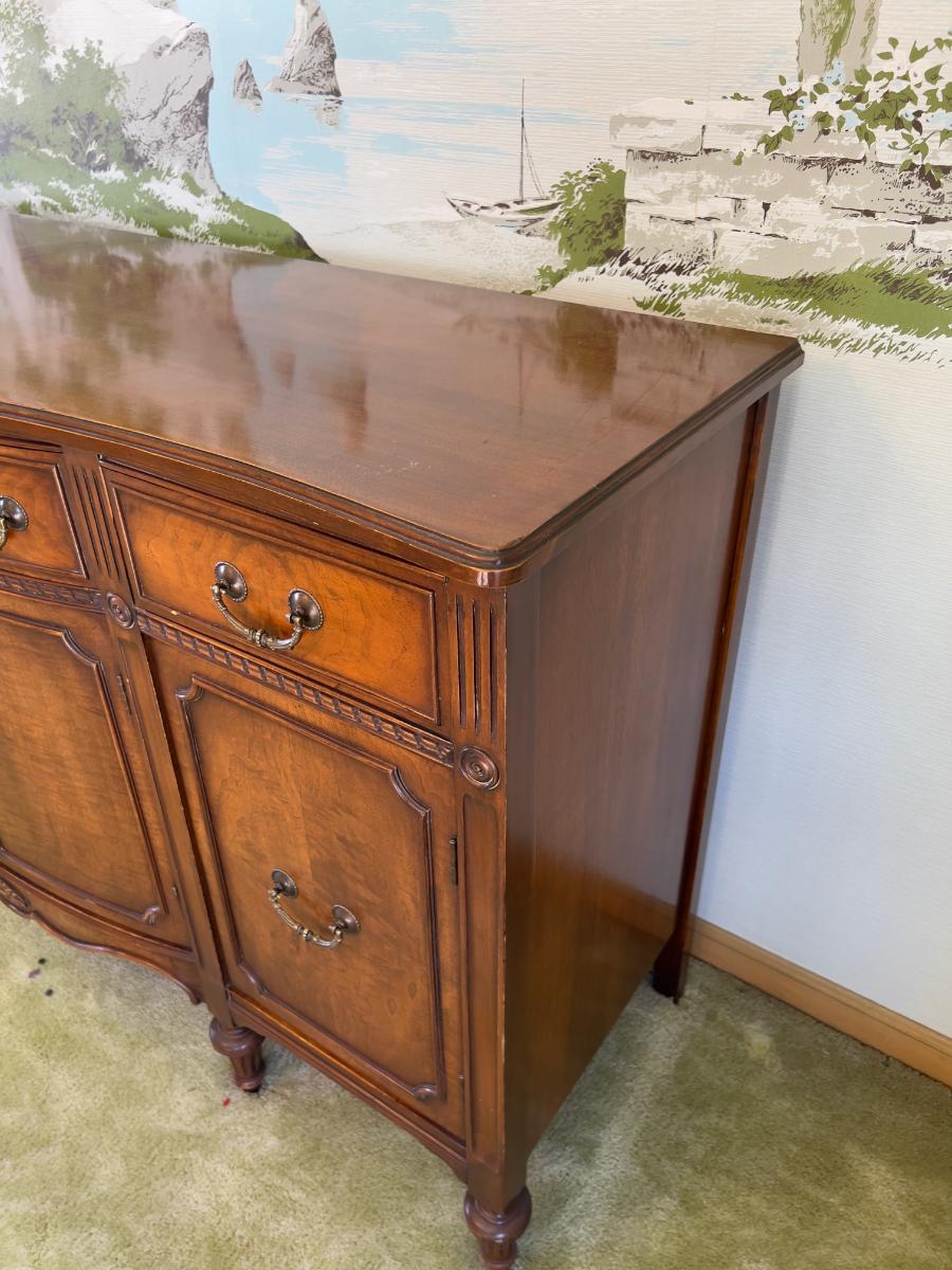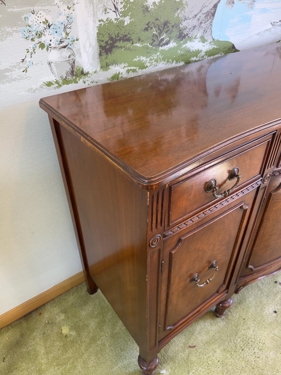 Very Good Condition. Ornate. Carved Wood. Sheraton Style. 3 Drawers 3 cupboards for the China or Whatever.