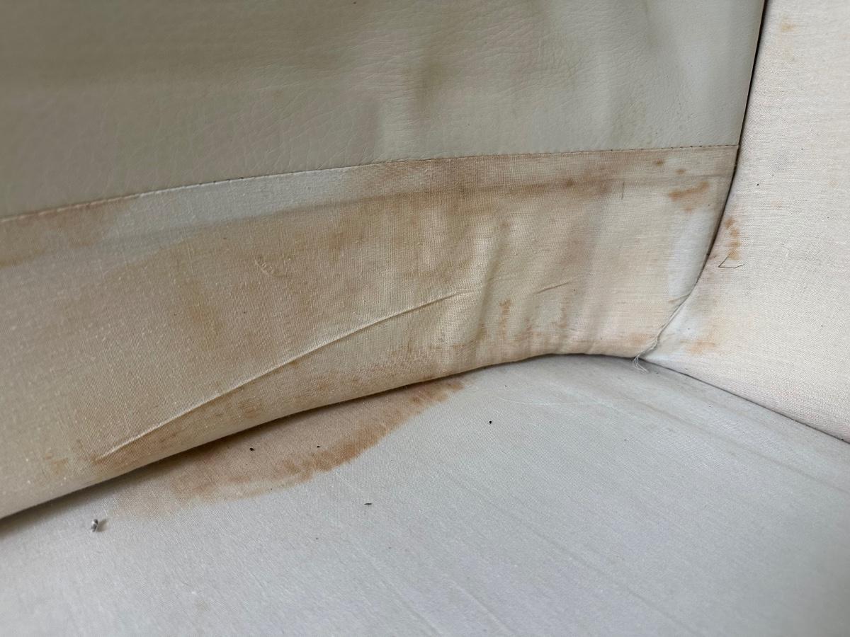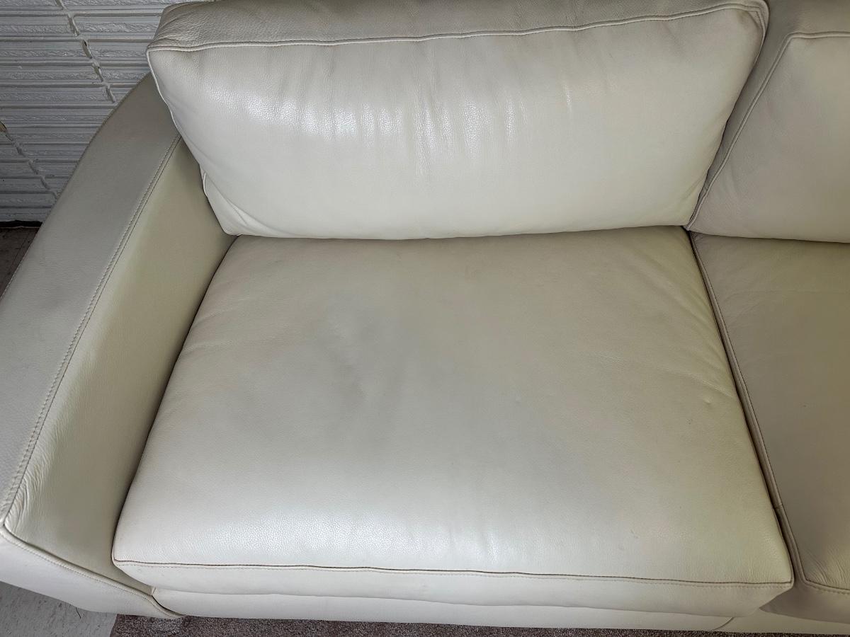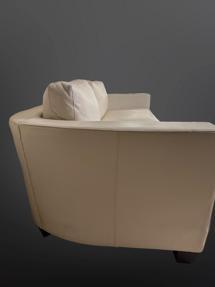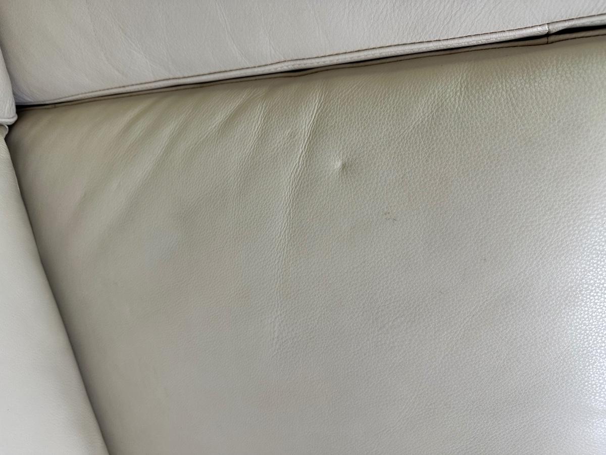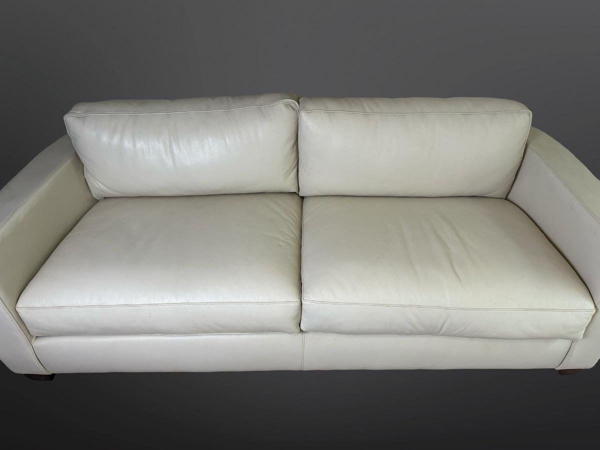 Matching leather chair in auction. Located on the first floor. Kept in “basement” - light use. The material under the cushions does have stains, see pictures.