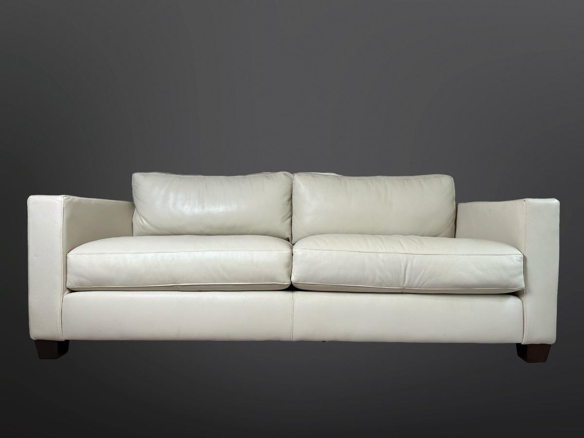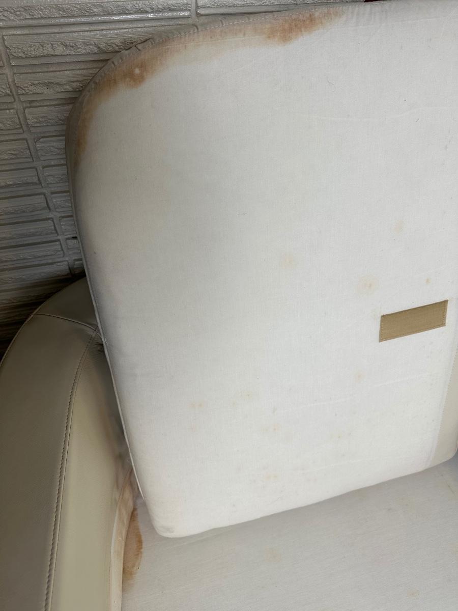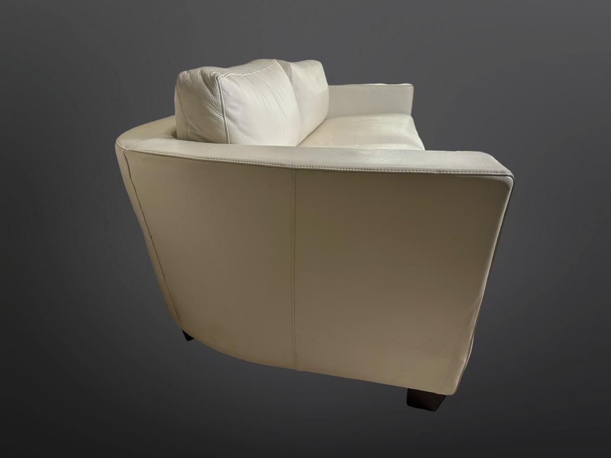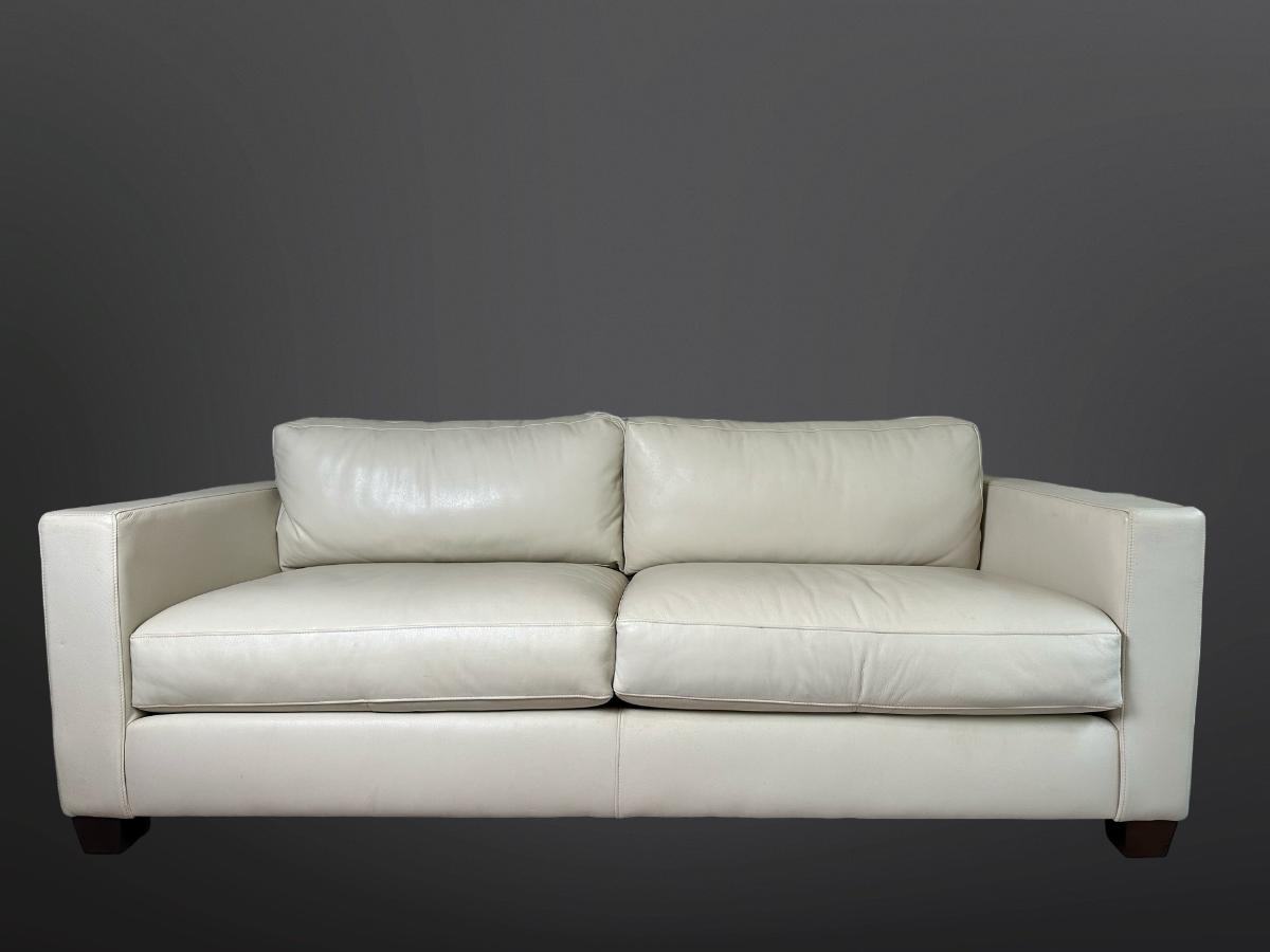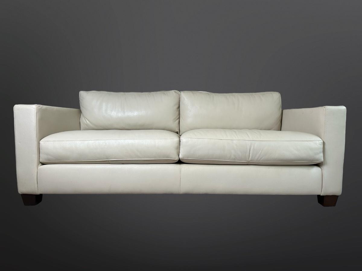 Matching leather chair in auction. Located on the first floor. Kept in “basement” - light use. The material under the cushions does have stains, see pictures.