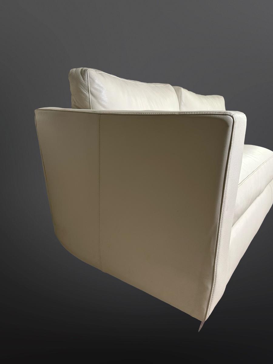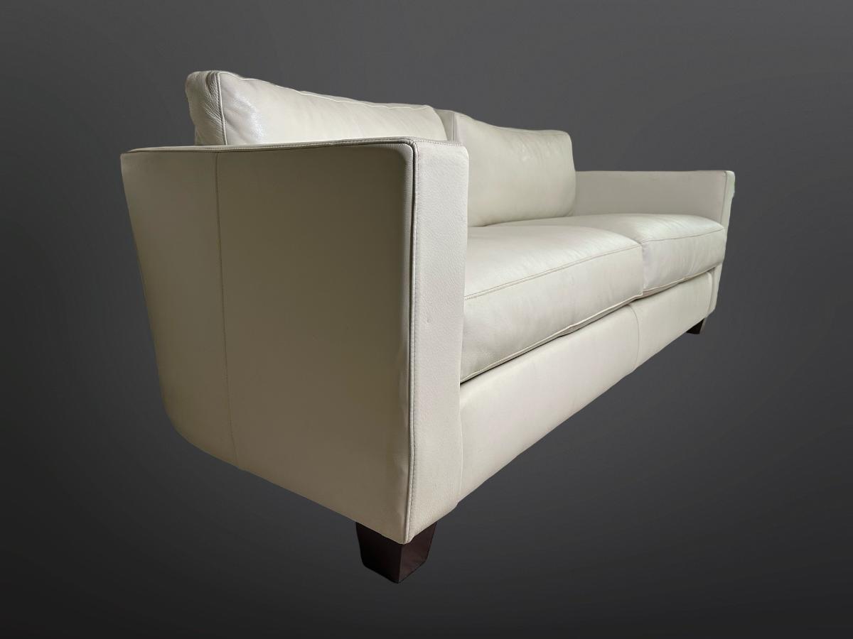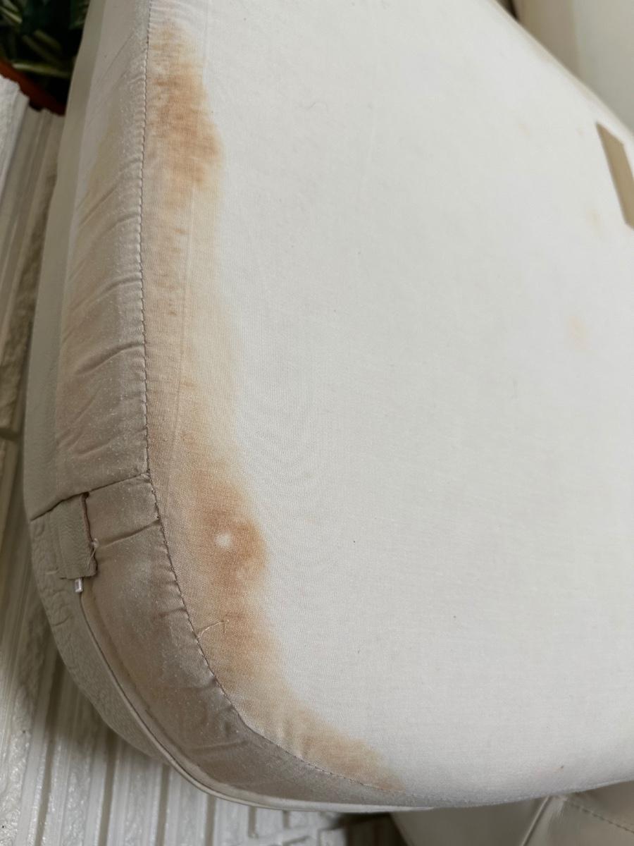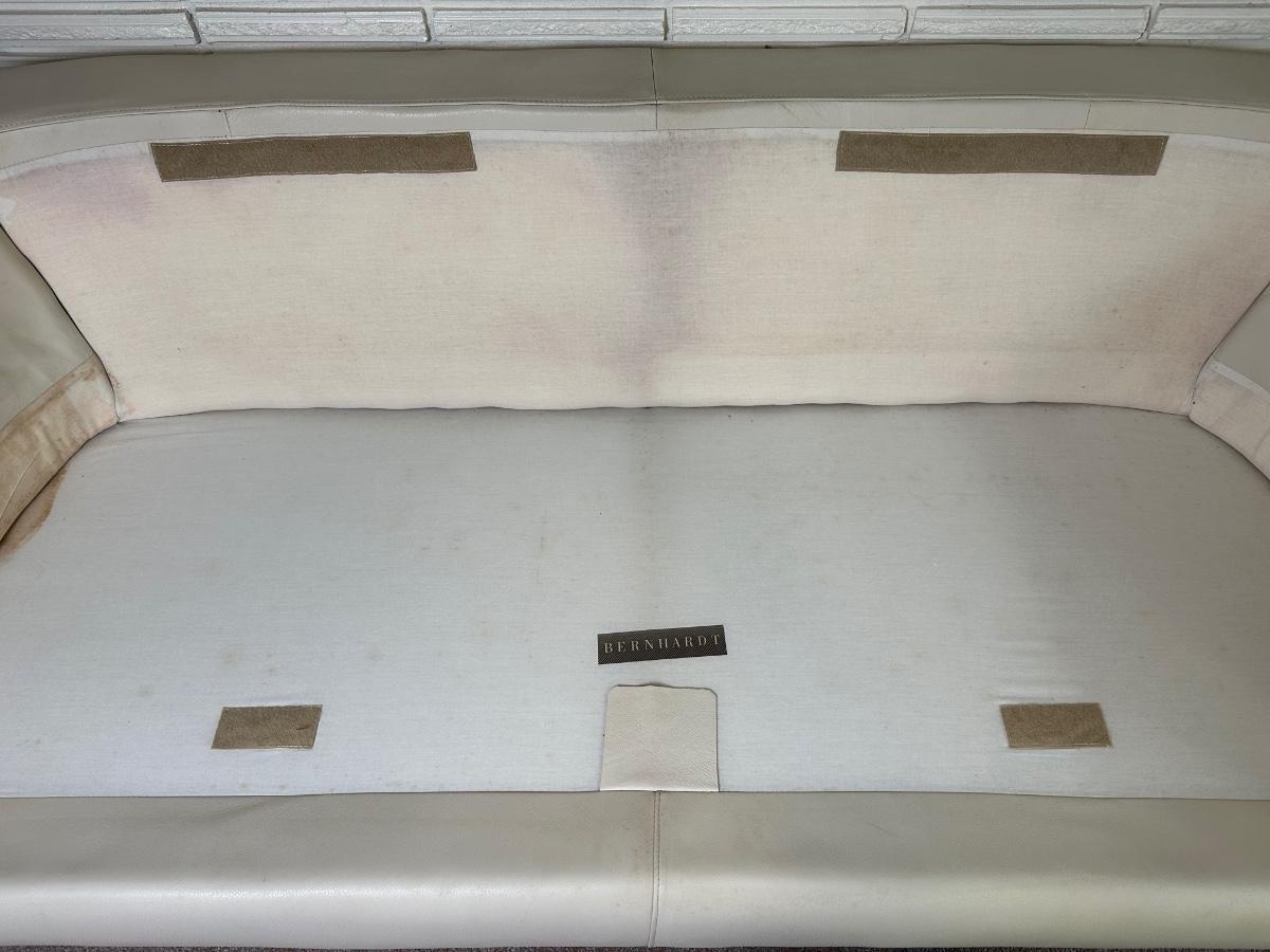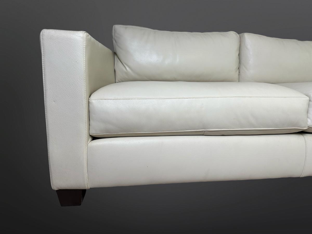 Matching leather chair in auction. Located on the first floor. Kept in “basement” - light use. The material under the cushions does have stains, see pictures.