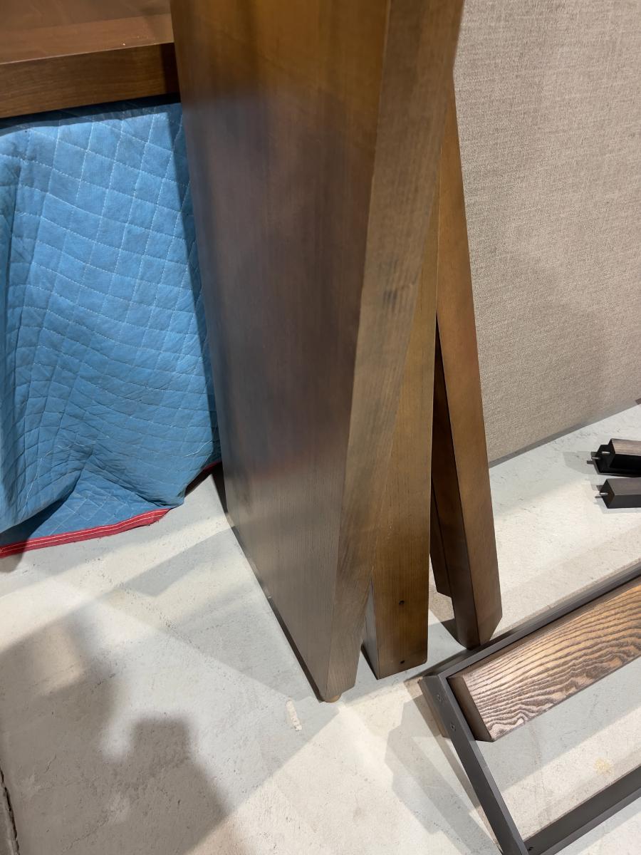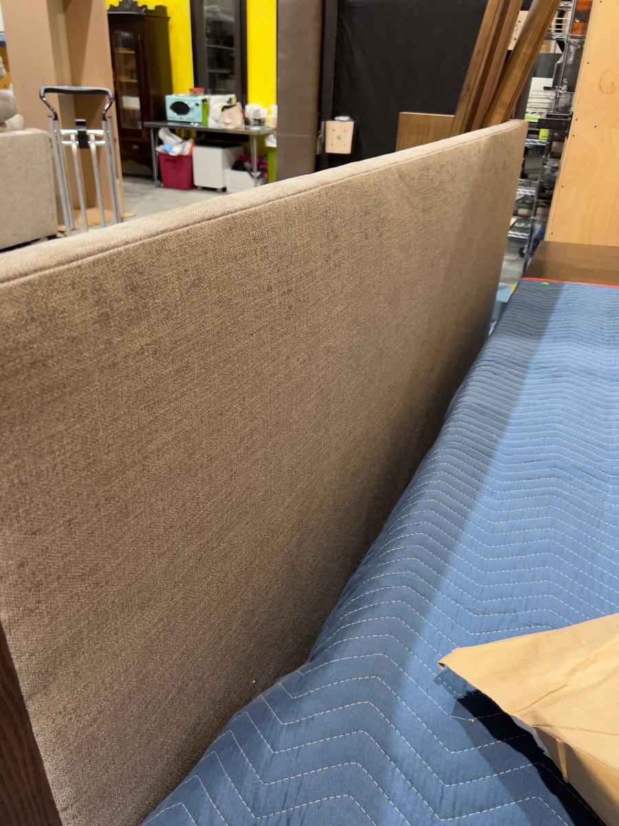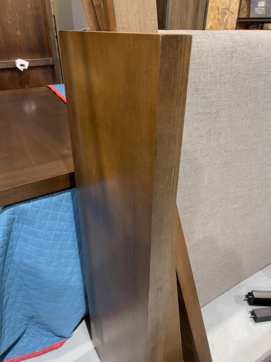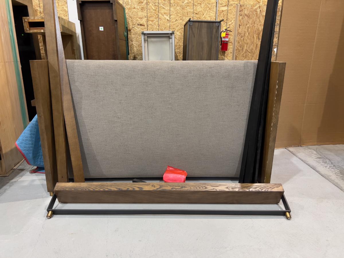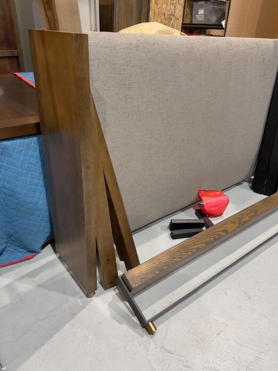 Headboard, Side-rails, Footboard, Slates. Complete. The Headboard has edge damage from moving. Heavy! Please provider moving assistance and secure transportation and or packing materials for moving! Retail $3,600.00