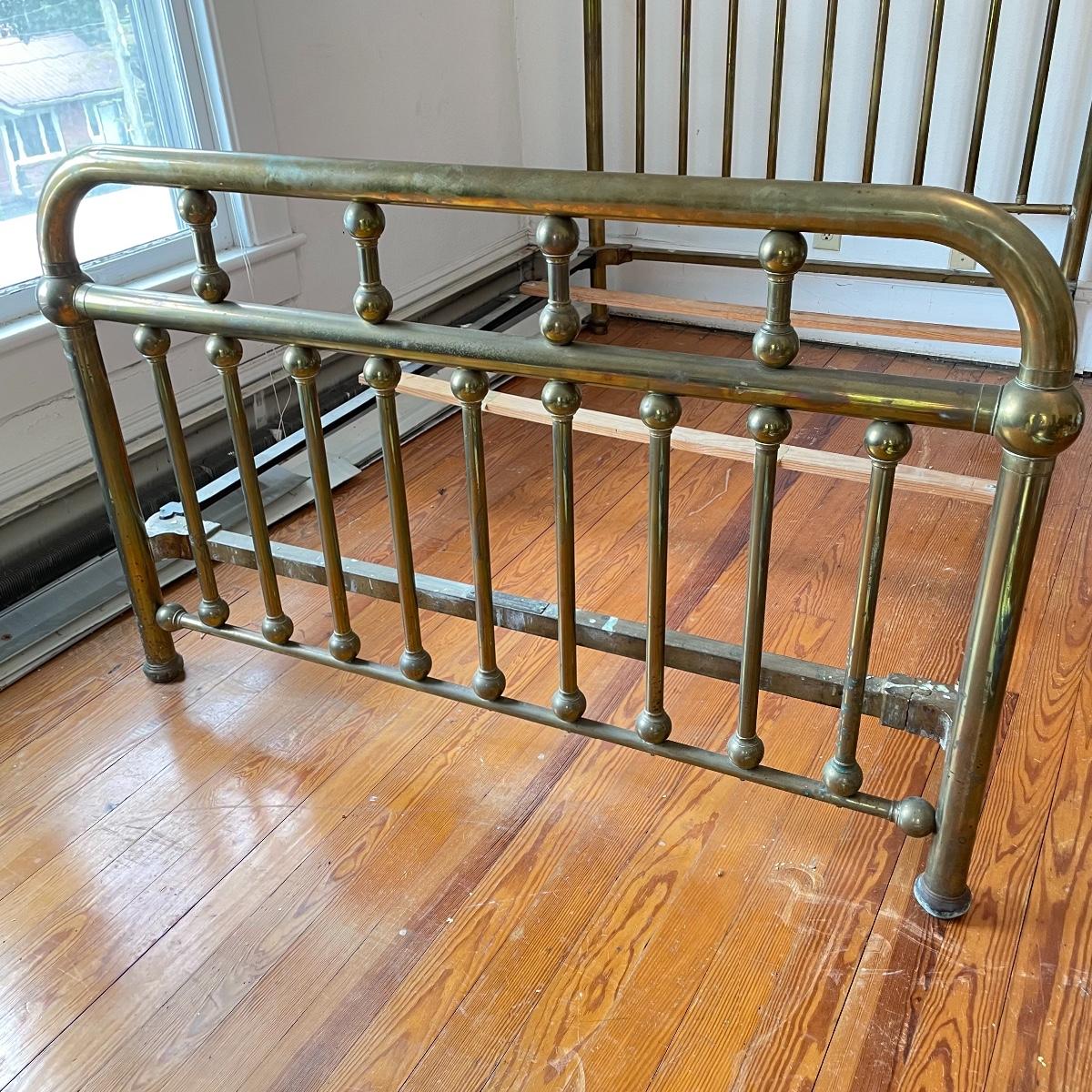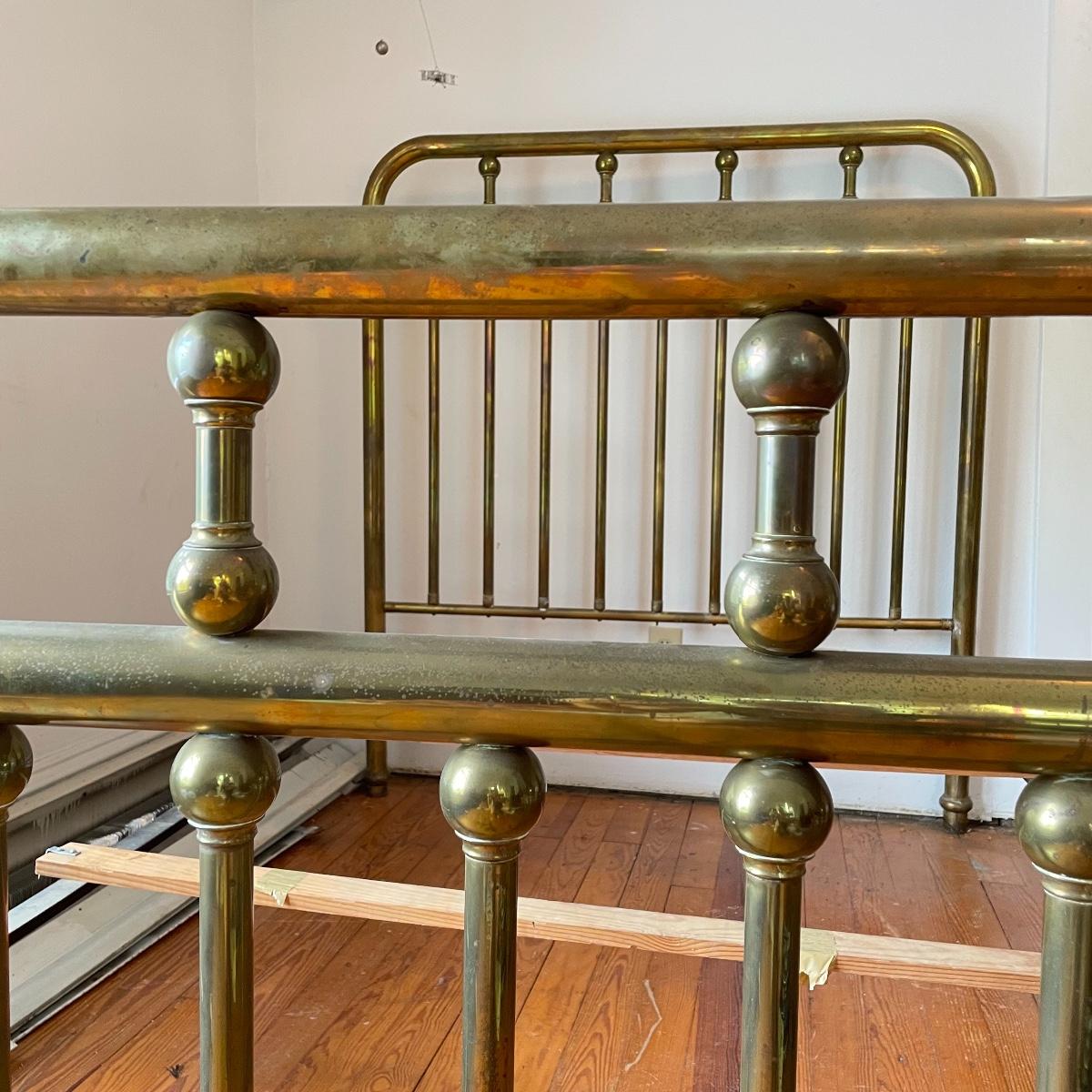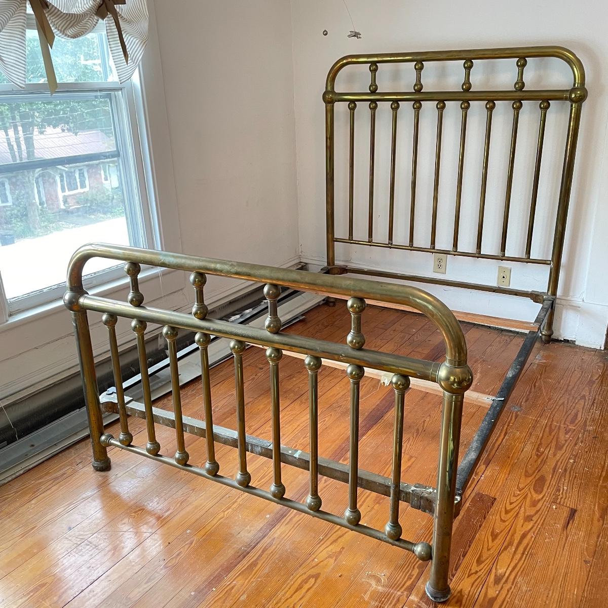 Stunning brass bed by Bernstein. Bed is full/double (54” x 80”). Headboard measures 54” x 50”, footboard is 54” x 36”. Some tools may be needed to disassemble. It appears a small wrench and mallet. Local pick up only.