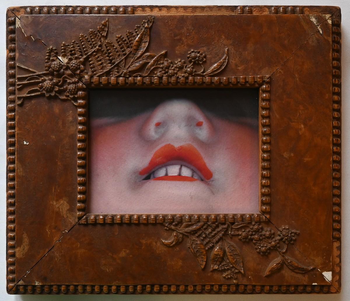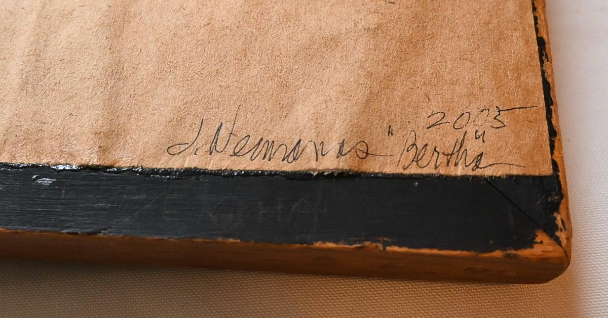 "Bertha" (2003) by an unknown artist (see signature). Mixed media. Approx. 9" x 10.5". Please note, listed dimensions includes frame.