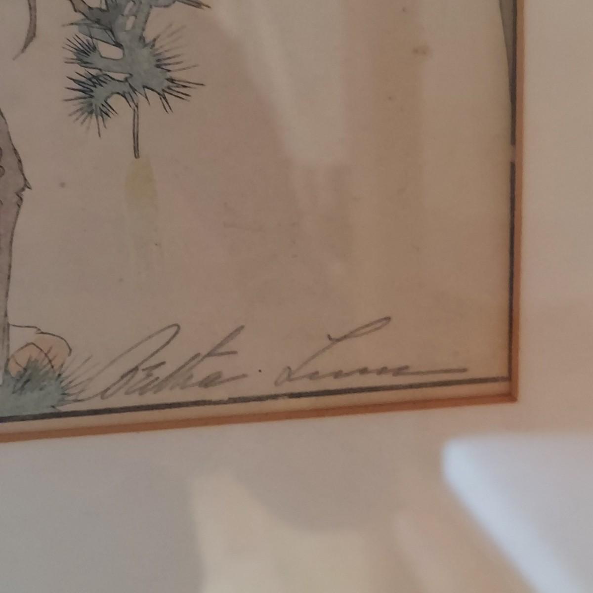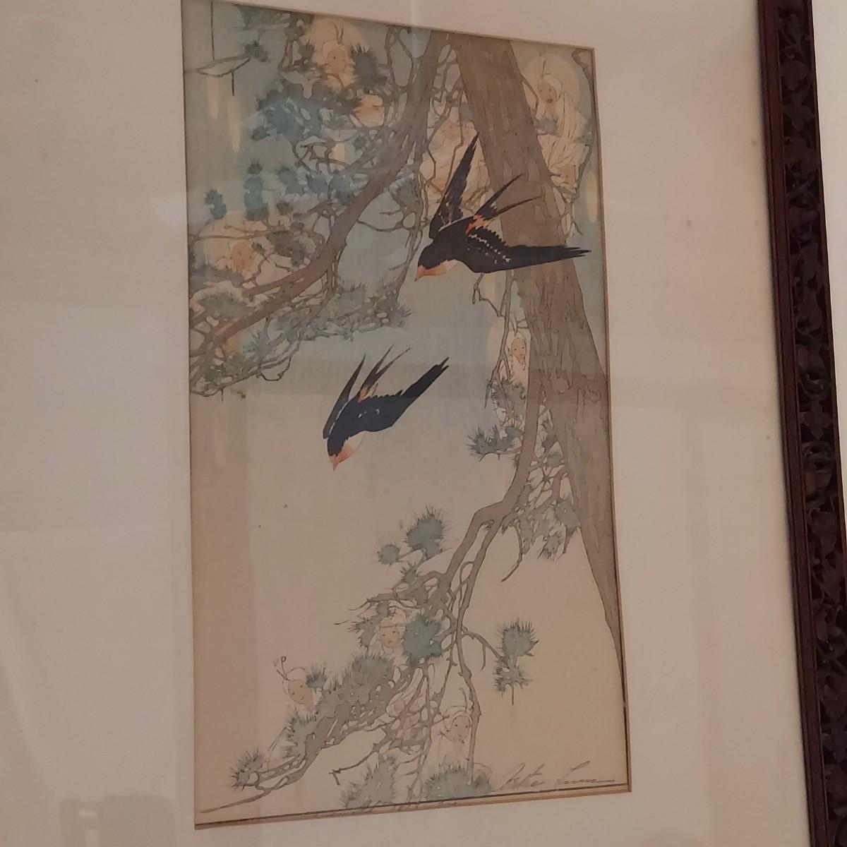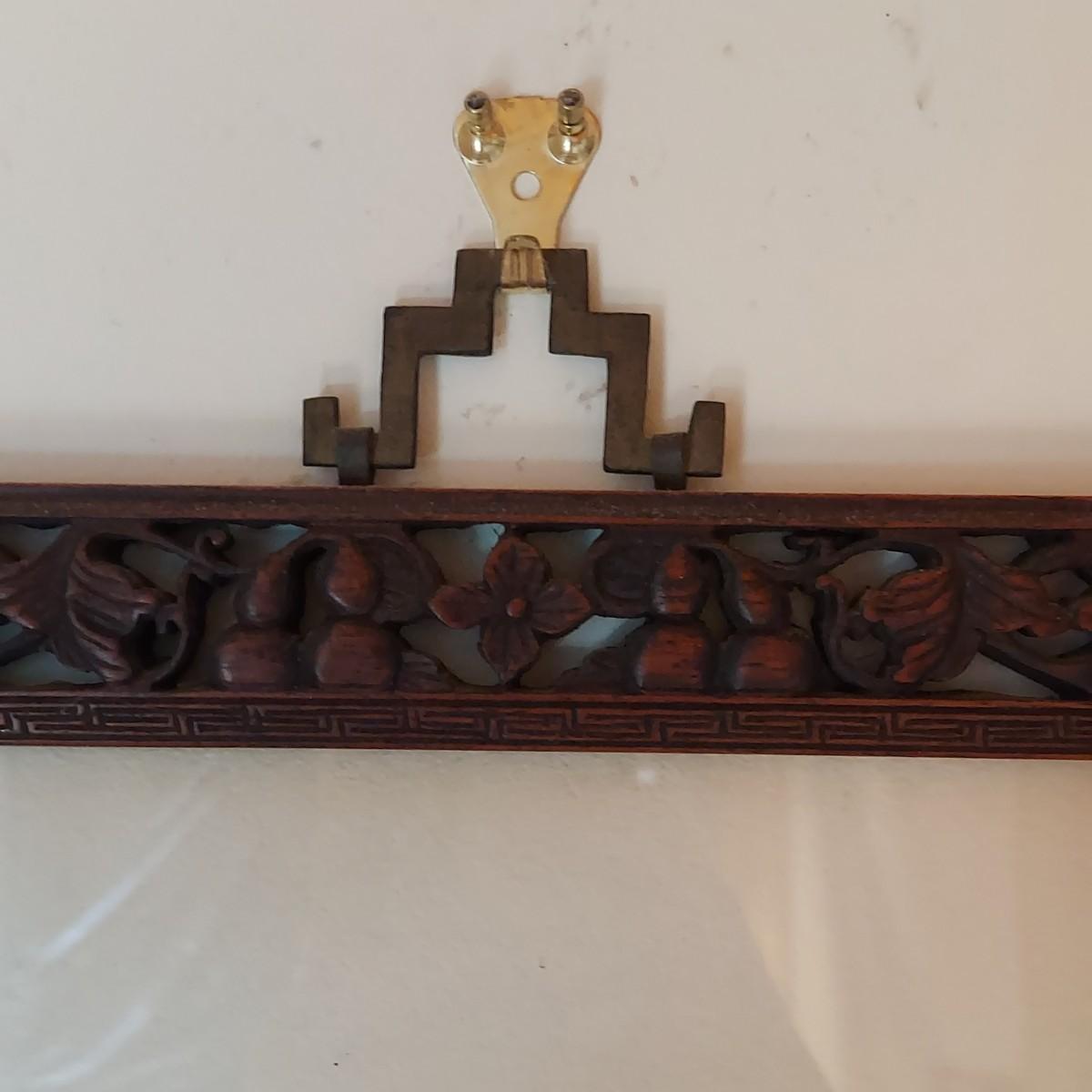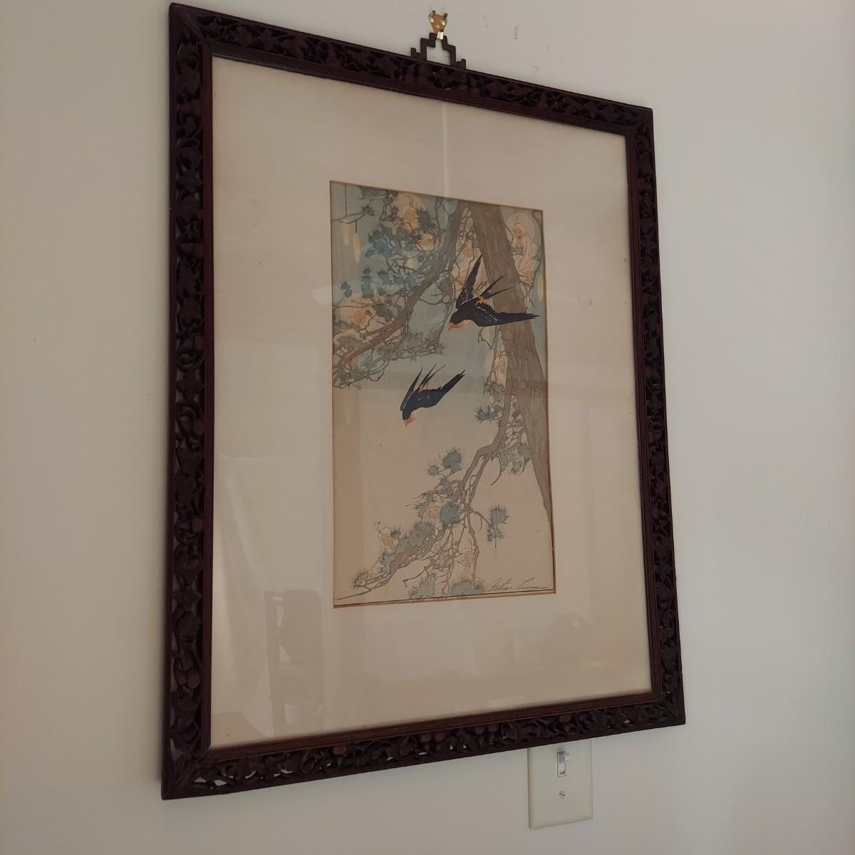 This appears to be a block print of Bertha Lum's 'Window on Distant and Hidden Things'. It is pencil signed and has other wording written in pencil that is mostly hidden under the mat. Art is framed and matted under glass. Wooden frame has delicate carved details with an East Asian style decorative metal hanger. Measures approximately 22” x 25"H. It appears to be separating at the corners on one side. Please see photos for details. Shipping available. Shipping certain items can be costly. We suggest contacting our preferred local shipping provider, Postage Express, with dimensions and getting an estimate before bidding: (828) 255-9250 or shipping@postageexpressnc.com