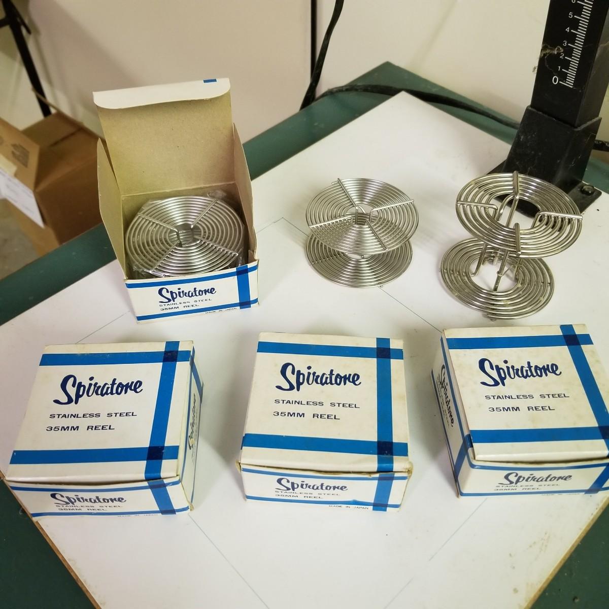 One Beseler 35mm/120 film enlarger. Comes with Beslar 1;3.5 50mm lens and one Schneider-Kreuznach Component 1:4/50 lens. Enlarger measures 14"x19"x31", has baseplate and adjustable column for focus and sizing. Also includes one GraLab model 300 timer, several Spiratone 35mm film developing reels, trays, tongs, an Airequipt paper holder, one Lloyd daylight film loader and a grain focus enlarger. Both enlarger and timer tested working. See photos for details. Local pickup only.