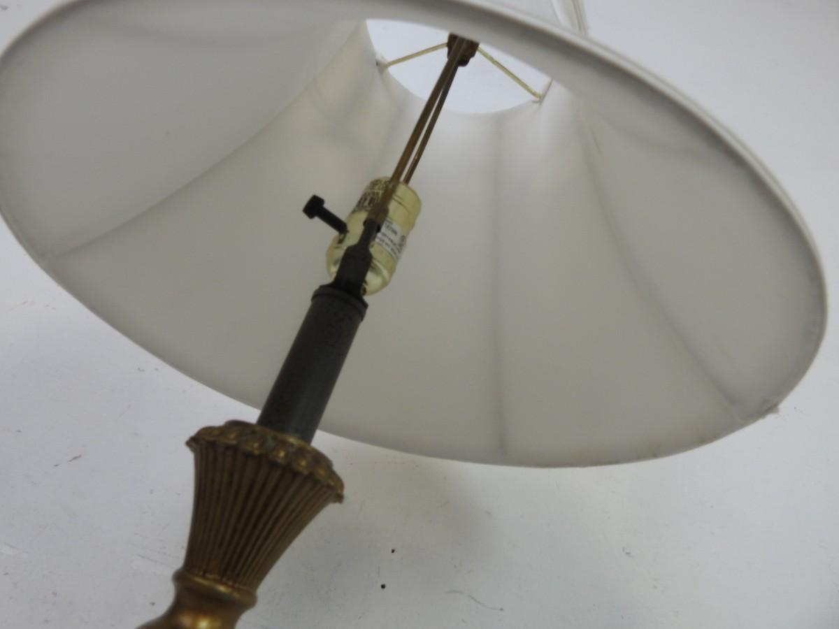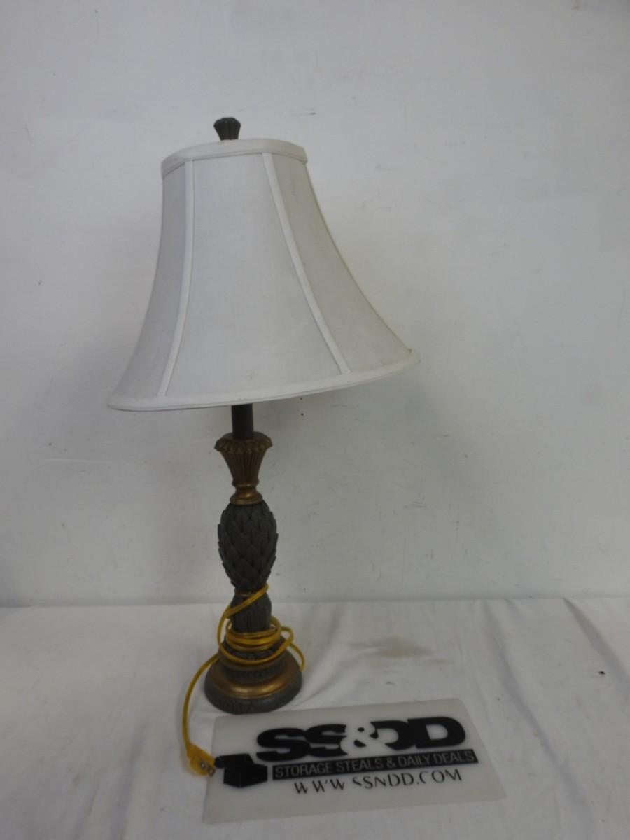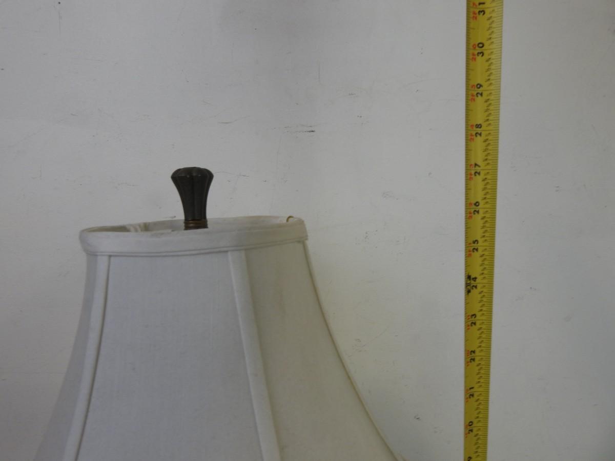 Beside Lamp 27.5", Bronze and Cracked Gray Painting, White Shade