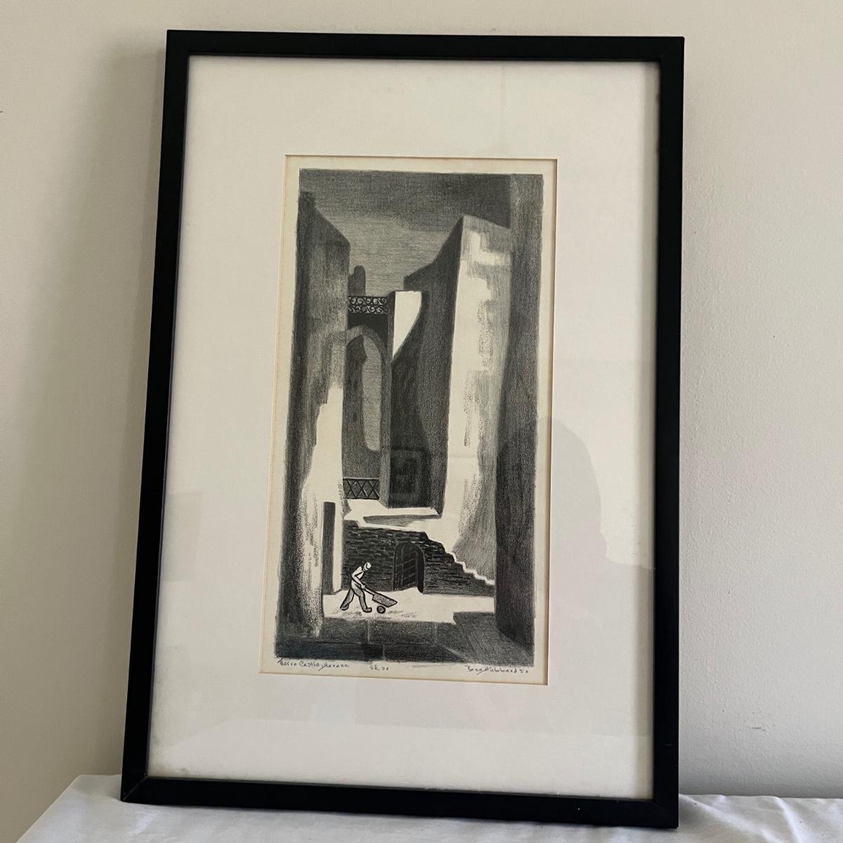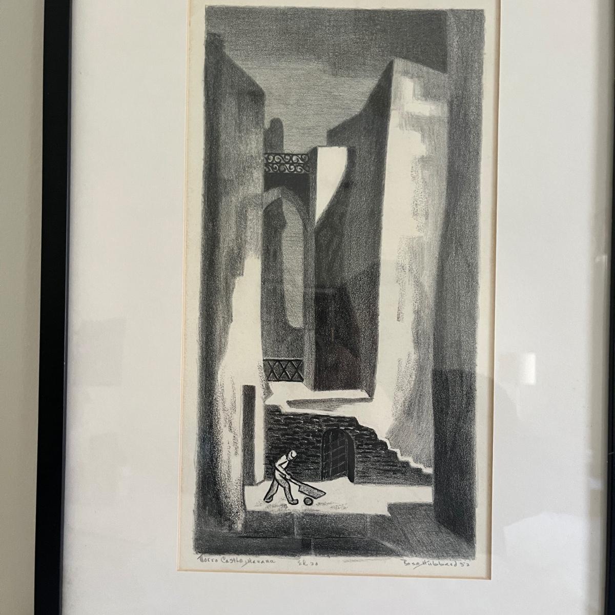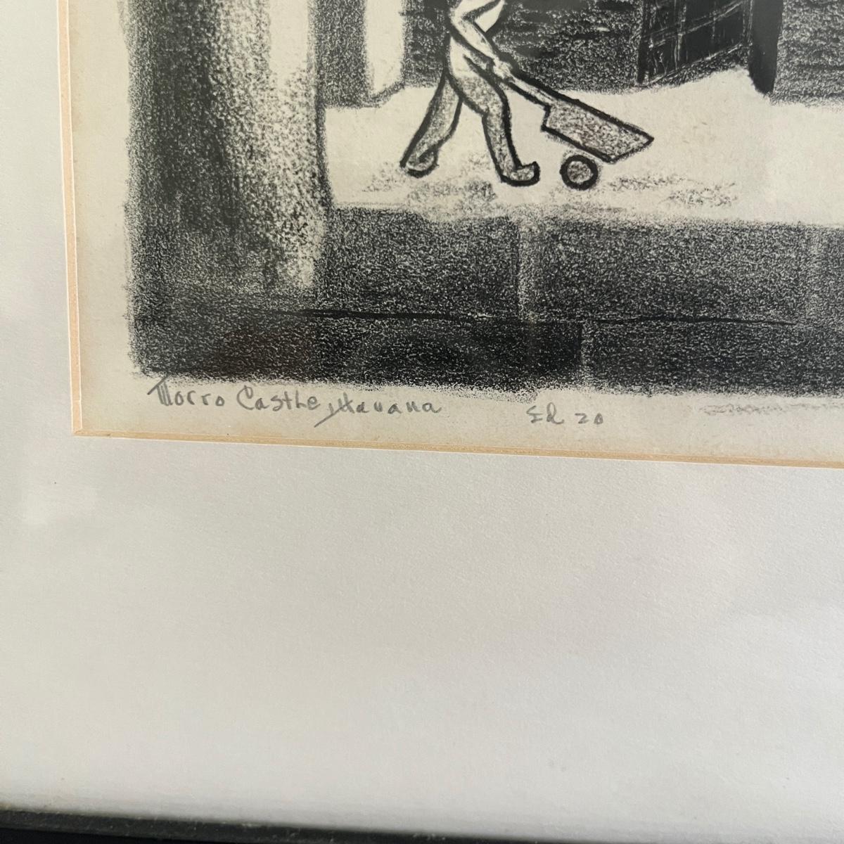 Lot includes a wooden framed, matted and pencil signed what appears to be an original charcoal titled “Torro Castle Havana“ that is under glass. Frame measures 15” x 21”H.