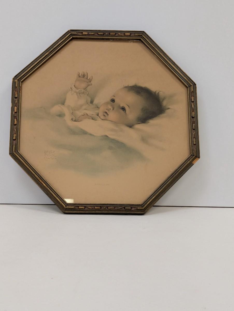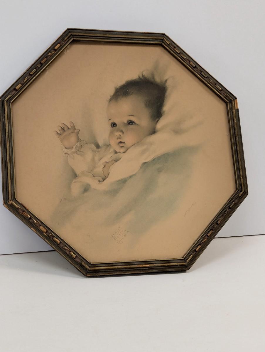 Bessie Pease Gutmann Original Print Awakening Vintage Art Deco Octagonal Frame