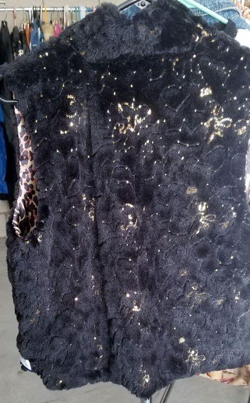 Betsey Johnson Faux fur vest with small gold spangles
