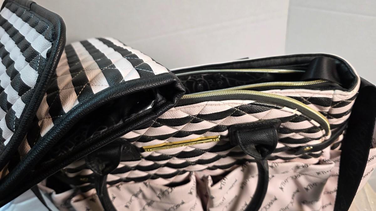 Betsey Johnson Quilted Black & Blush Stripe Designer Tote / Diaper Bag – New Without Tags