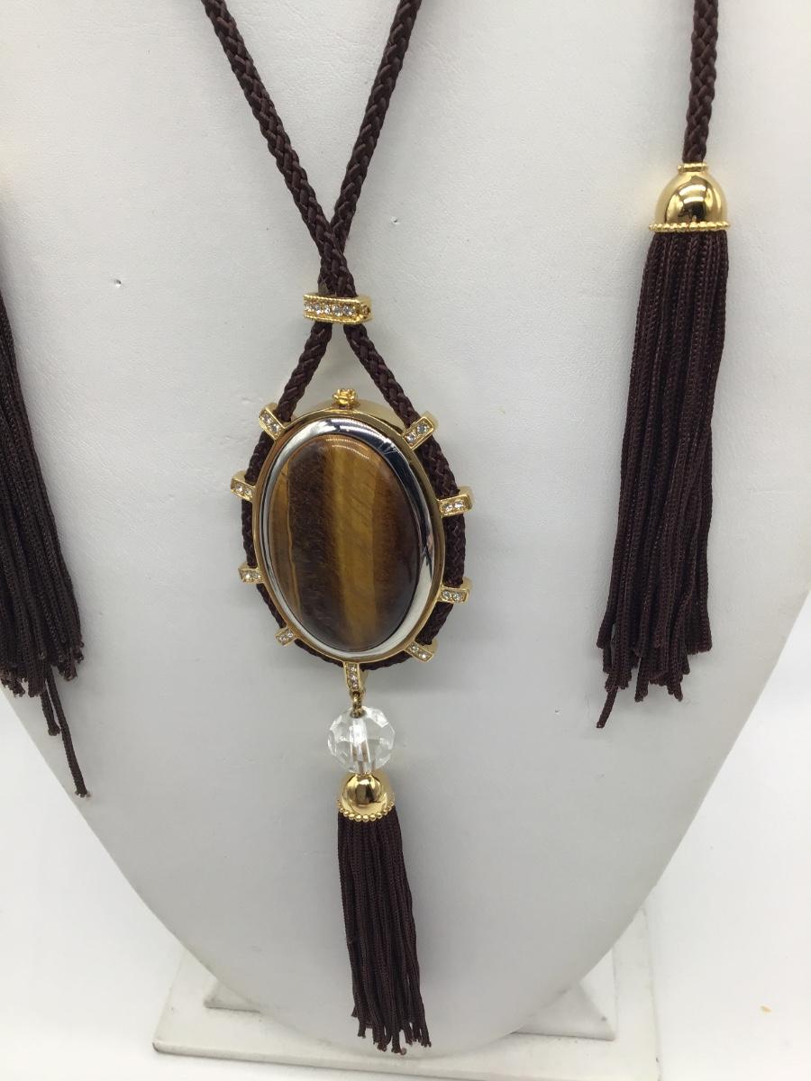 Betsy Johnson Tigers Eye Watch Reversible Statement Necklace. Working Perfectly
