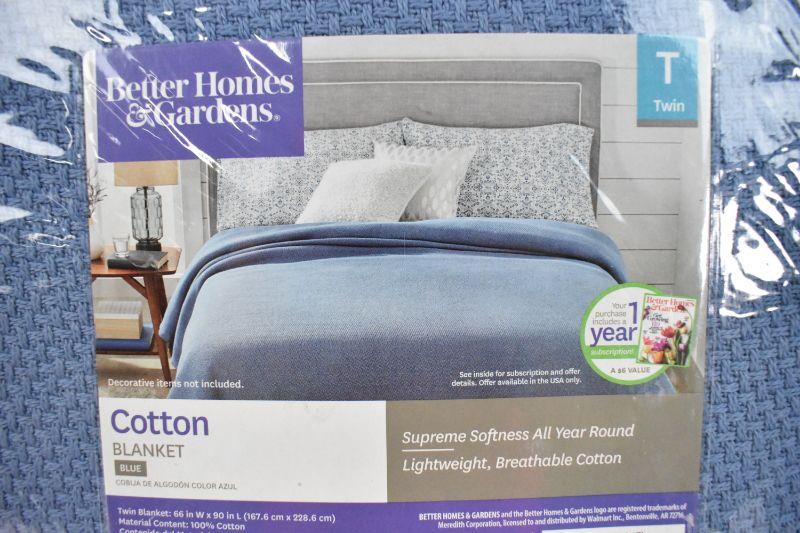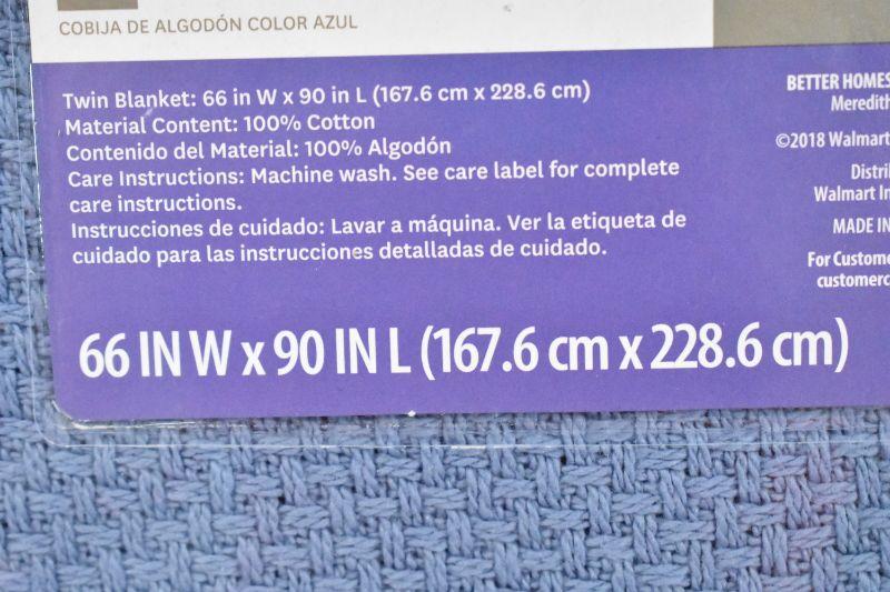 Better Homes and Gardens Cotton Blanket, Twin Size, Blue - New