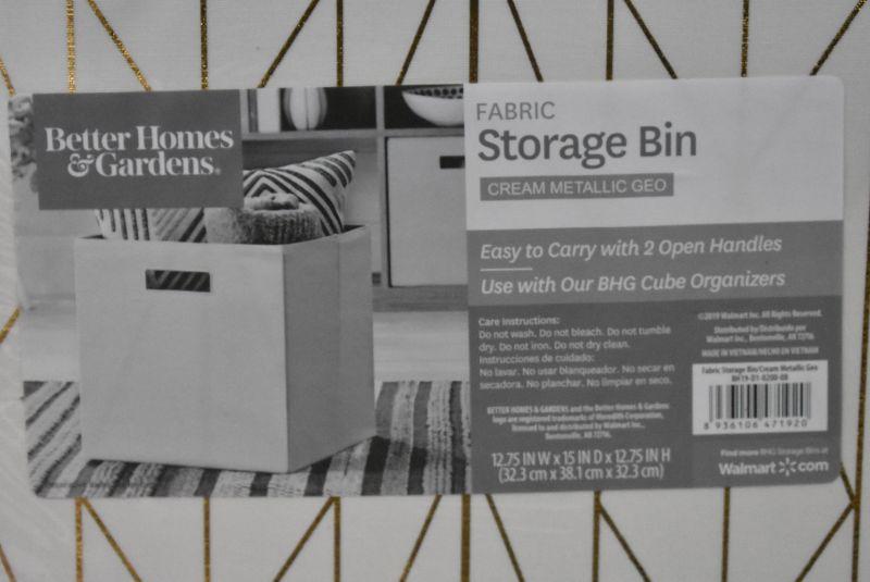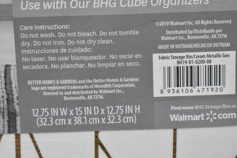 Better Homes and Gardens Fabric Storage Bins, Set of 2, Cream Metallic Geo - New