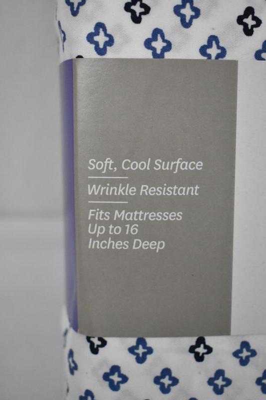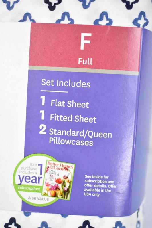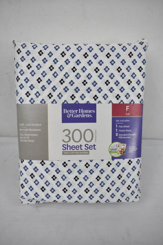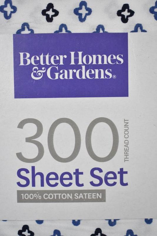 Better Homes and Gardens Full Size Sheet Set, 300 TC, White w/ Blue/Navy Design