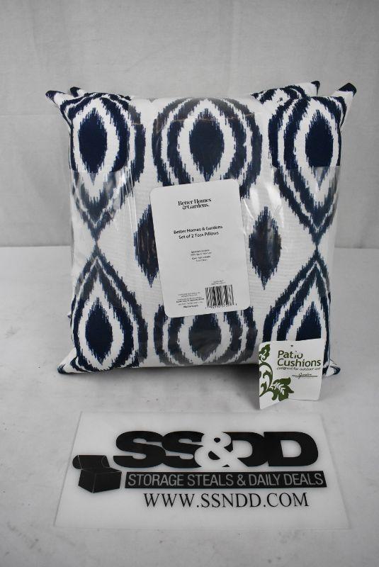 Better Homes & Gardens 2-Piece Outdoor Toss Pillow Set, Indigo Blue Ikat - New