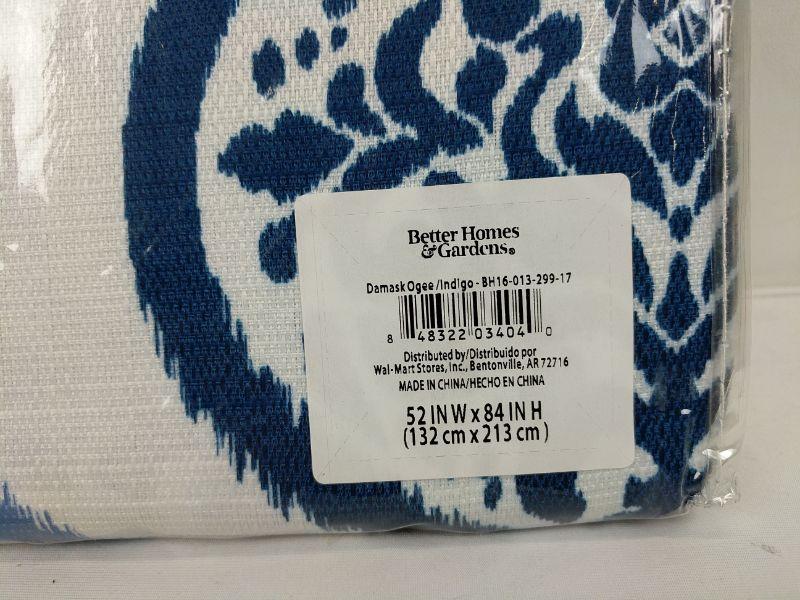 Better Homes & Gardens Bamask Ogee/Indigo Curtain Panel, Set of 2, 52" x 84" - New
