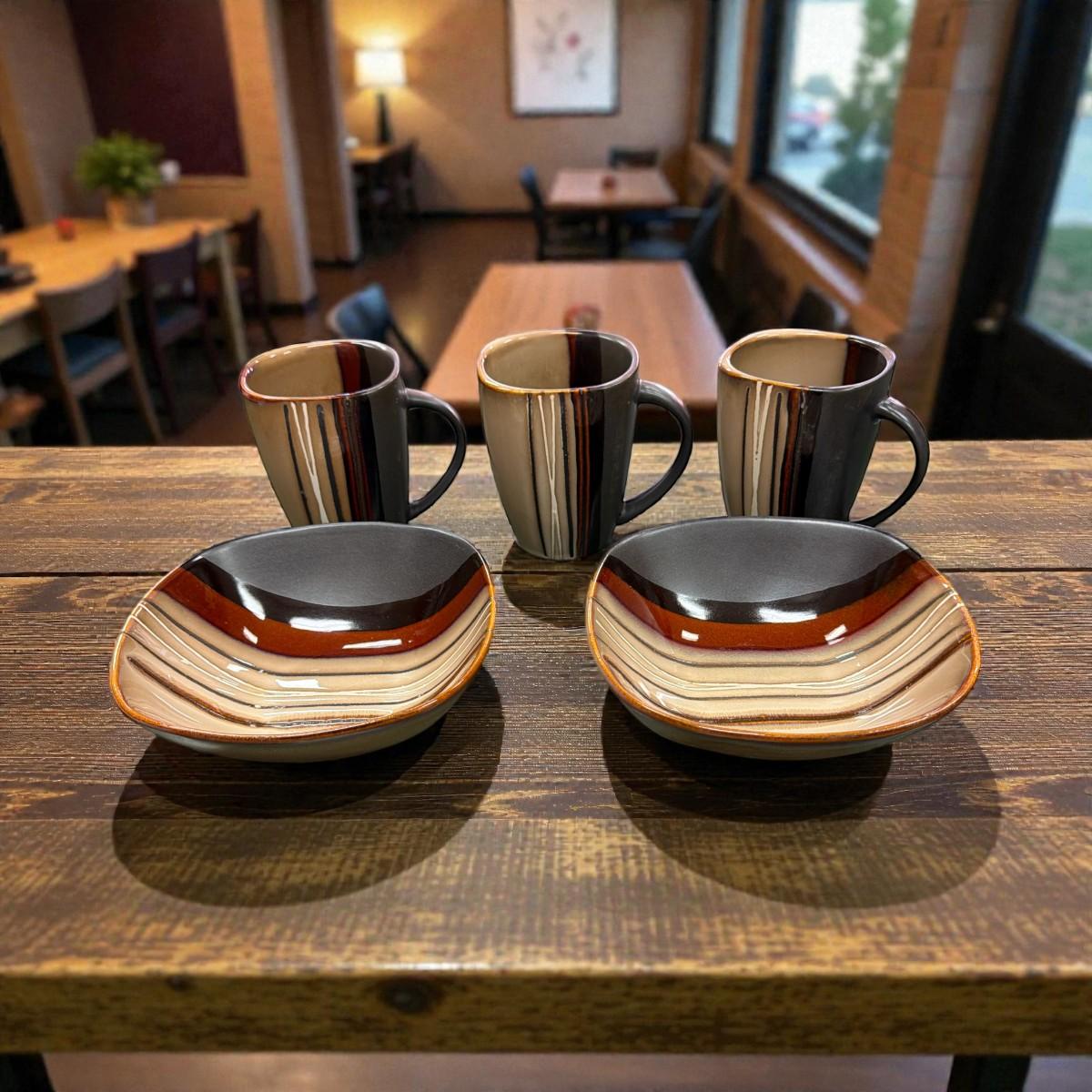 Better Homes & Gardens Bazaar Brown Stoneware Cups and Bowls