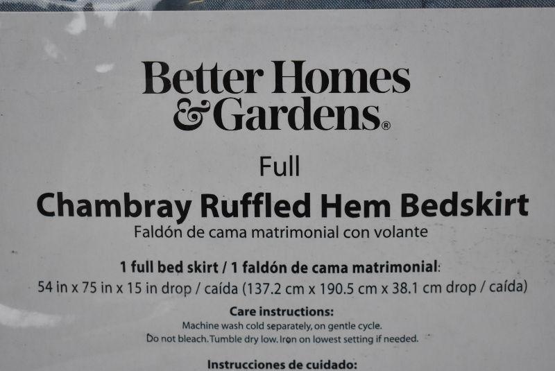 Better Homes & Gardens Cotton Ruffle Hem Bed Skirt, hambray, Full Size - New