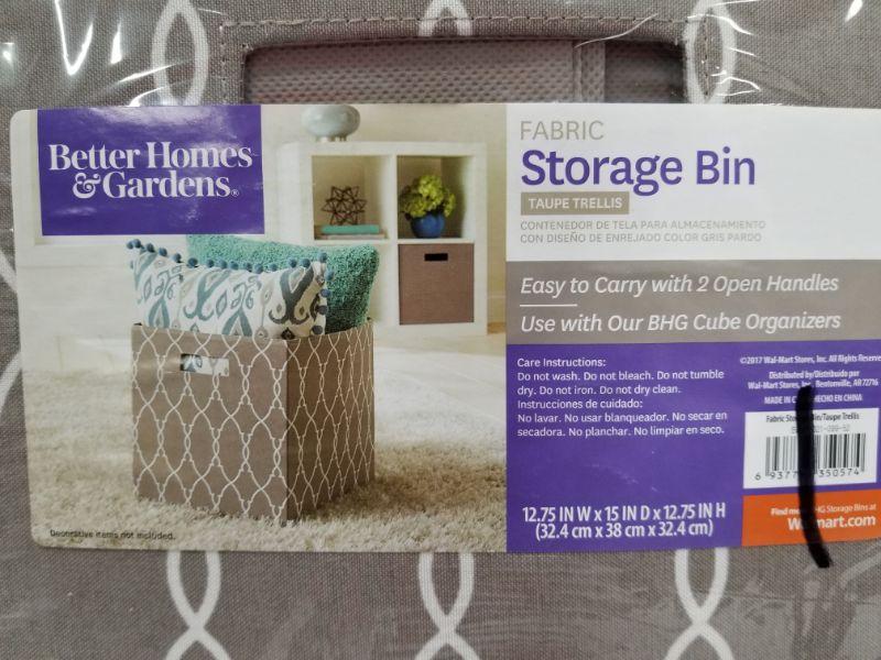 Better Homes & Gardens Fabric Storage Bin Pair - Taupe Trellis - New