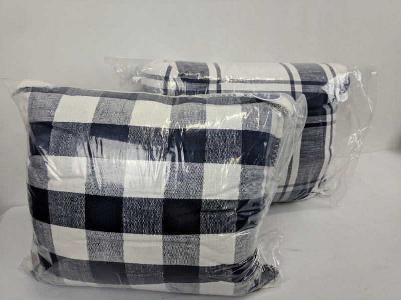 Better Homes & Gardens Navy/White Plaid Reversible Pillows, Set of 2 - New