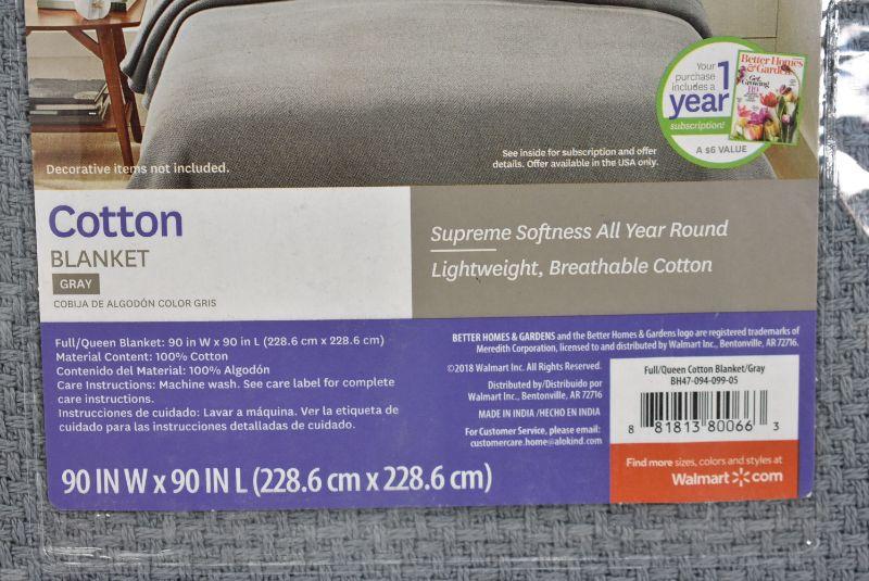 Better Homes & Gardens Pure Cotton Woven Full/Queen Bed Blanket in Grey - New