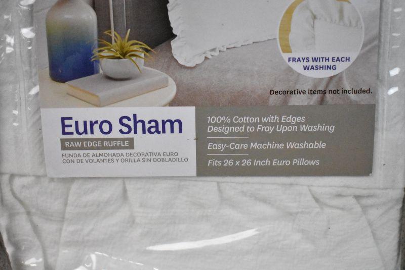Better Homes & Gardens Raw Edge Ruffle Euro Pillow Sham, White - New