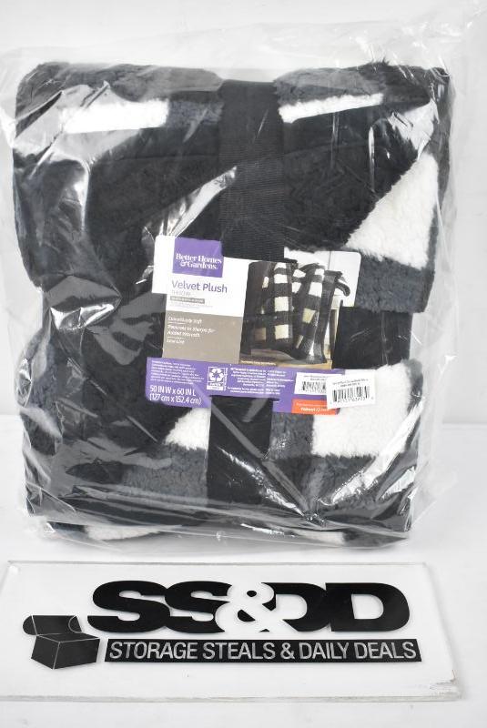 Better Homes & Gardens Sherpa Throw Blanket, 50" x 60", Black Plaid - New
