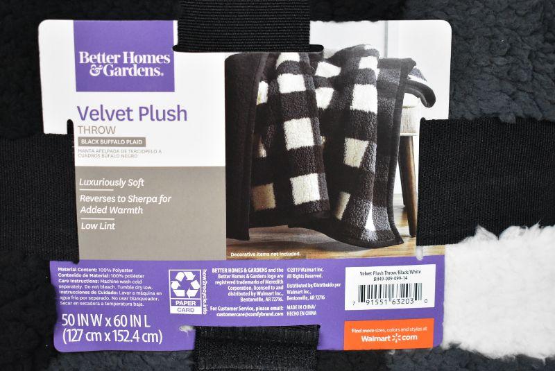 Better Homes & Gardens Sherpa Throw Blanket, 50" x 60", Black Plaid - New