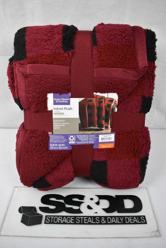 Better Homes & Gardens Sherpa Throw Blanket, 50" x 60", Red Plaid - New