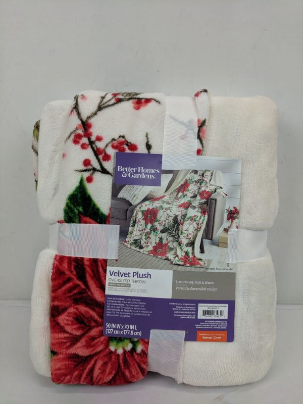 Better Homes & Gardens Velvet Plush Oversized Throw Berry Poinsettia - New