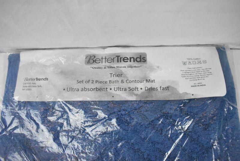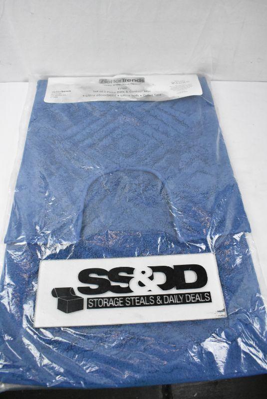 Better Trends Trier 2 Piece Bath Rug Set 20" X 30" & 20" X 20" Blue - New
