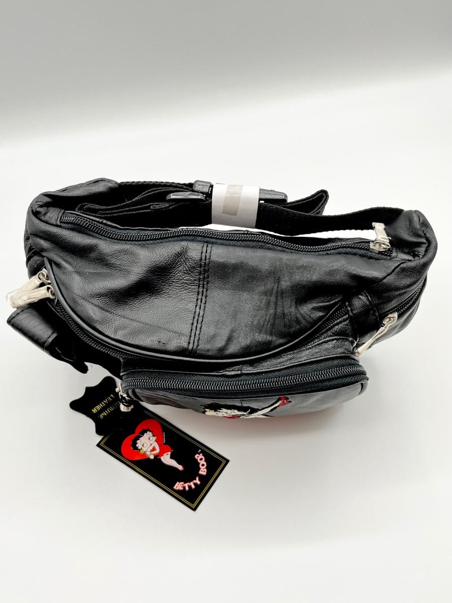 BETTY BOOP ~ Vtg. Embroidered Black Leather Fanny Pack