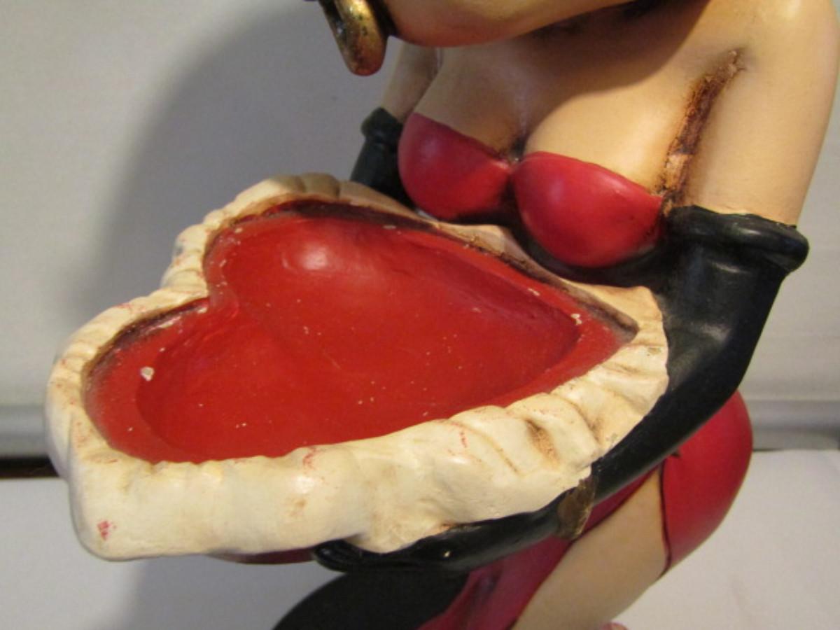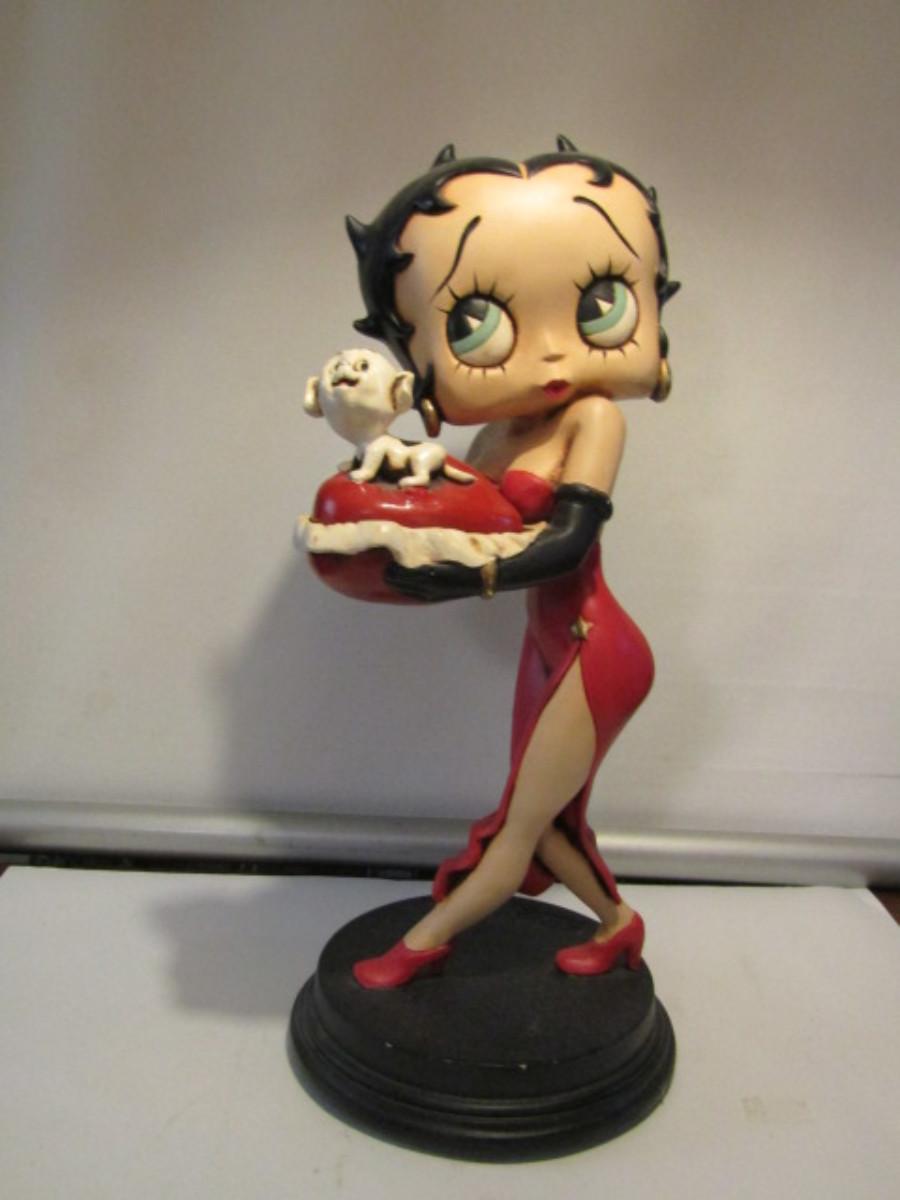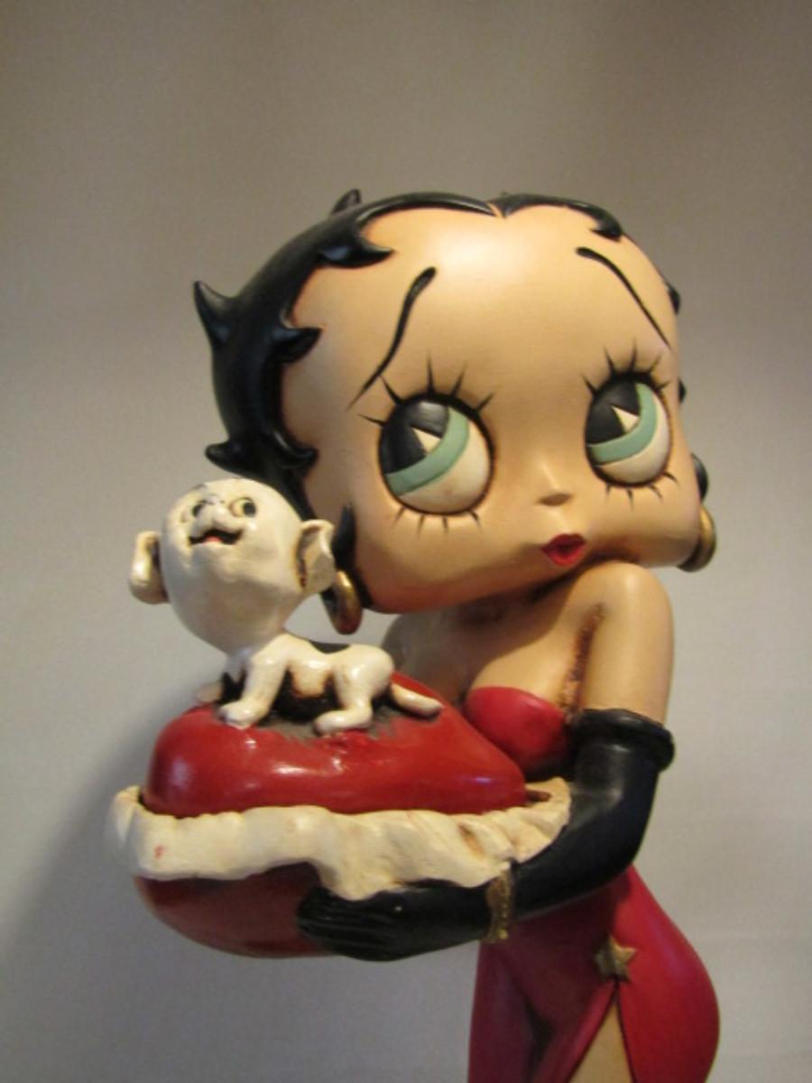 Betty Boop with Bimbo the Dog on Heart Shaped Bowl Statue- Approx 22" Tall. Please see all pictures- Bimbo has paint missing from nose.