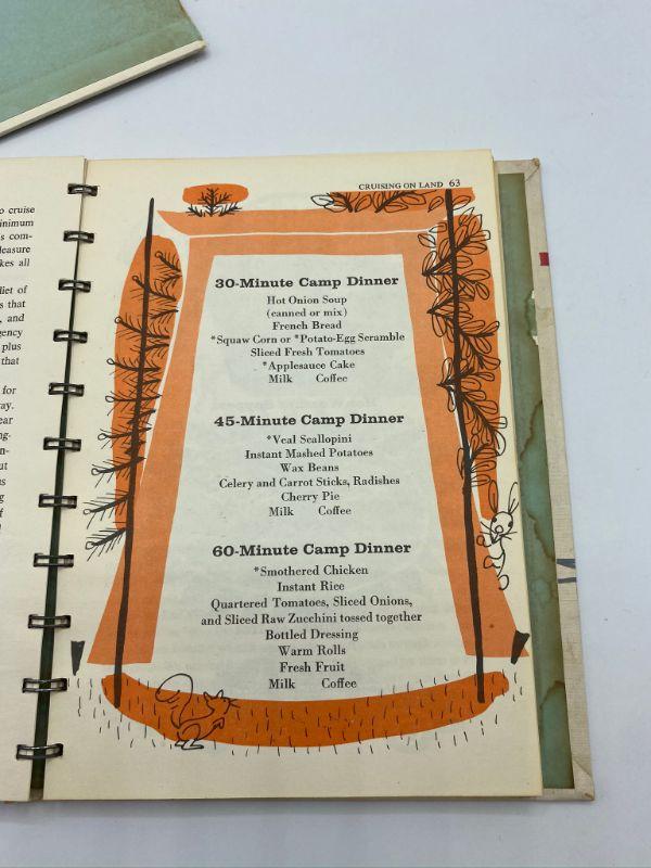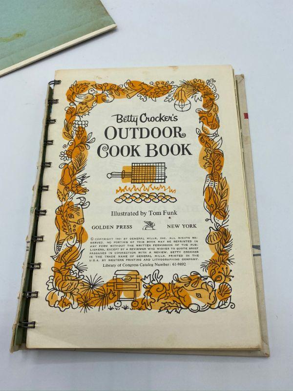 Betty Crocker's Outdoor Cook Book. From 1961. Spiral spine, unfortunately the cover is no longer attached. Great recipes and info.