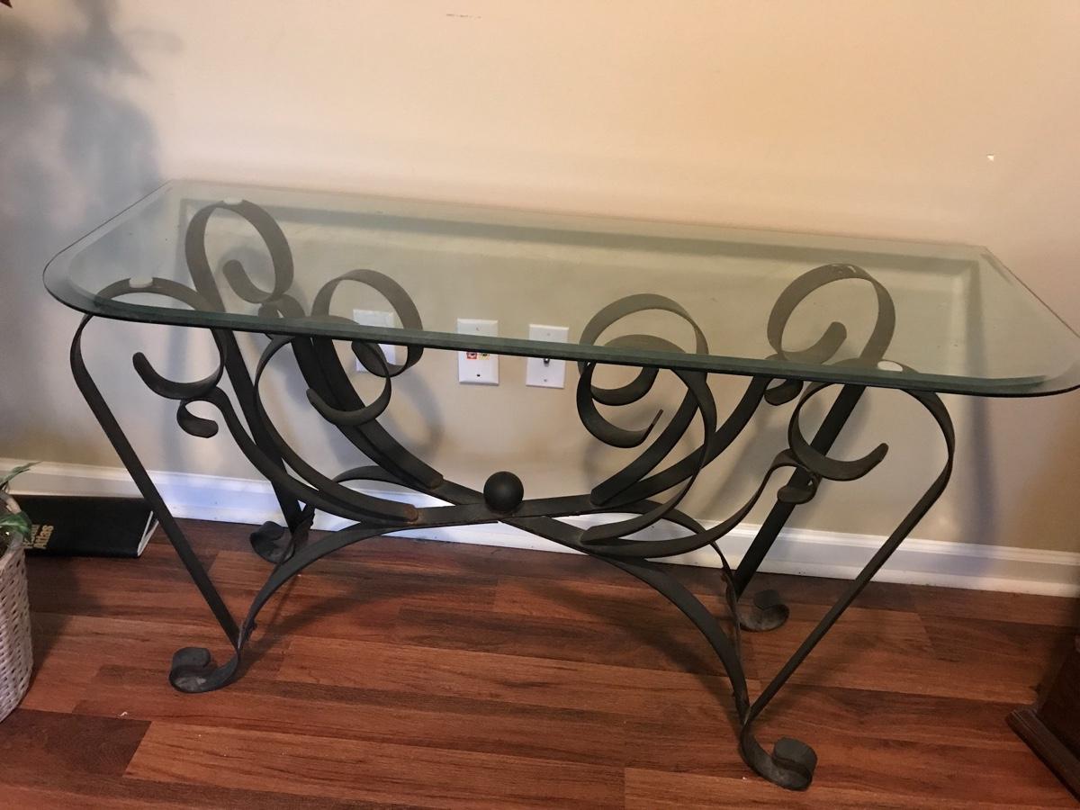 Bevel Glass Foyer Table w/Metal Base 49"W x 19"D x 27"H