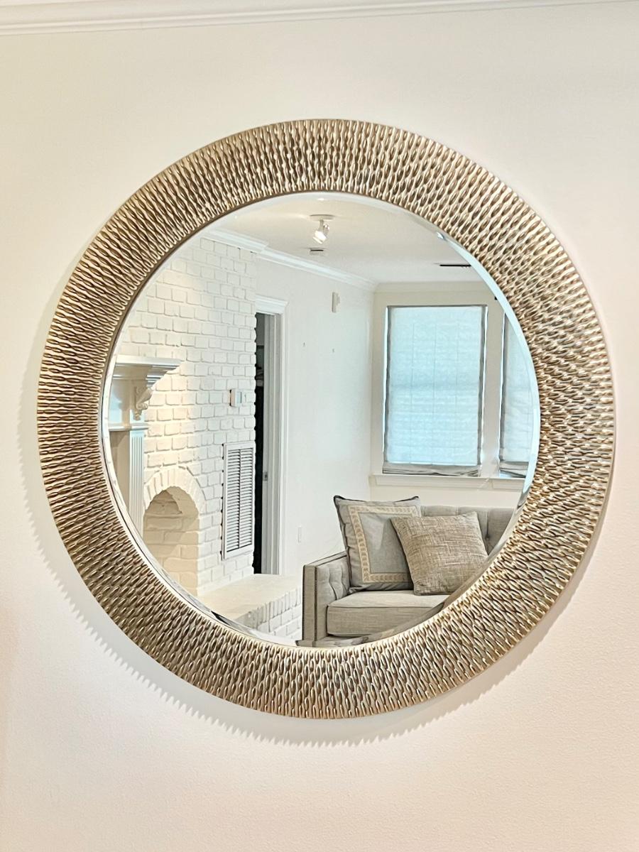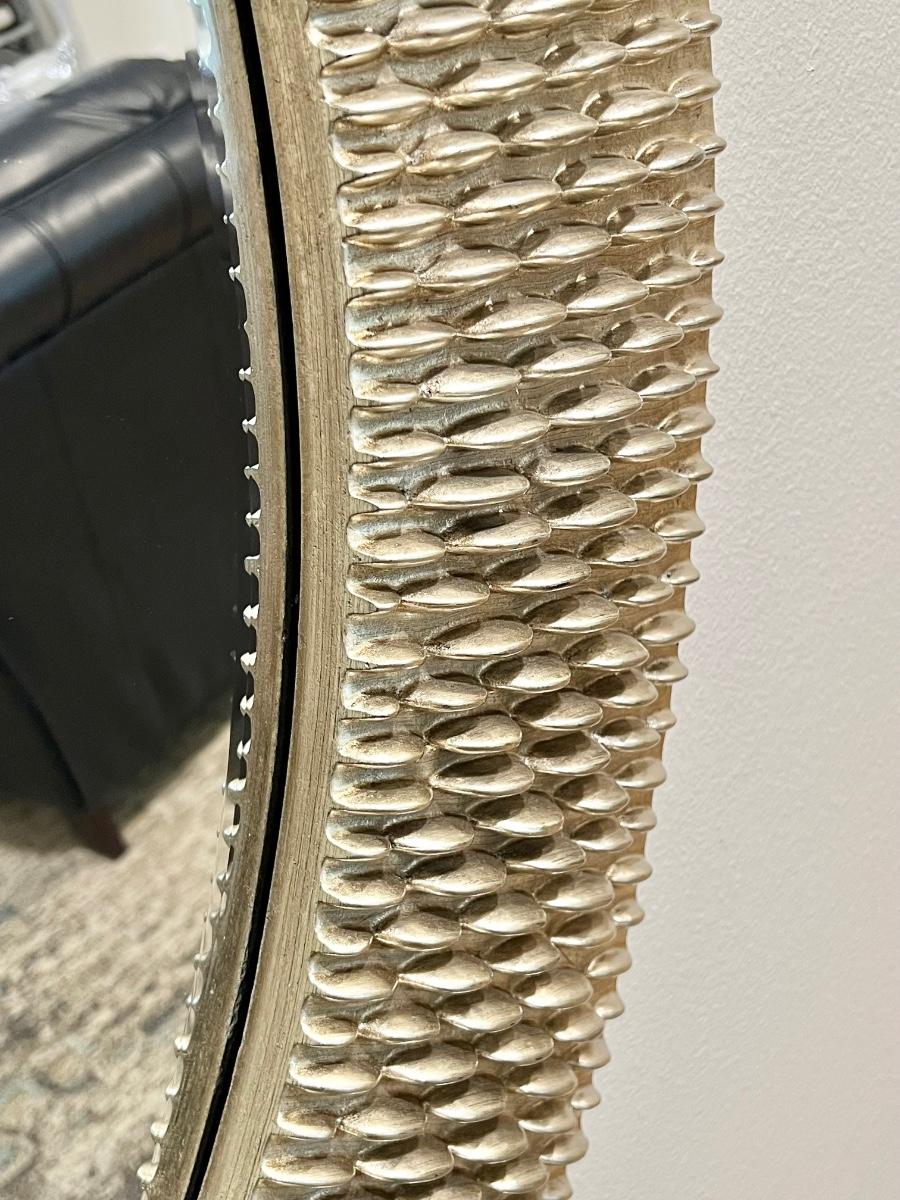 Mirror is a brushed champagne silver leaf color ~ Mirror = 54" Round x 2" D