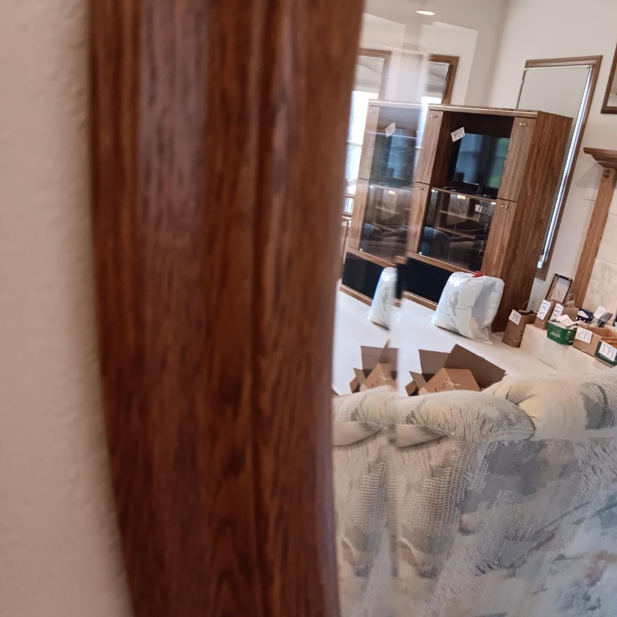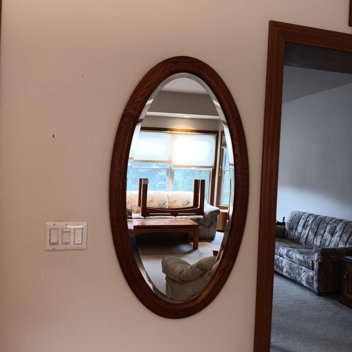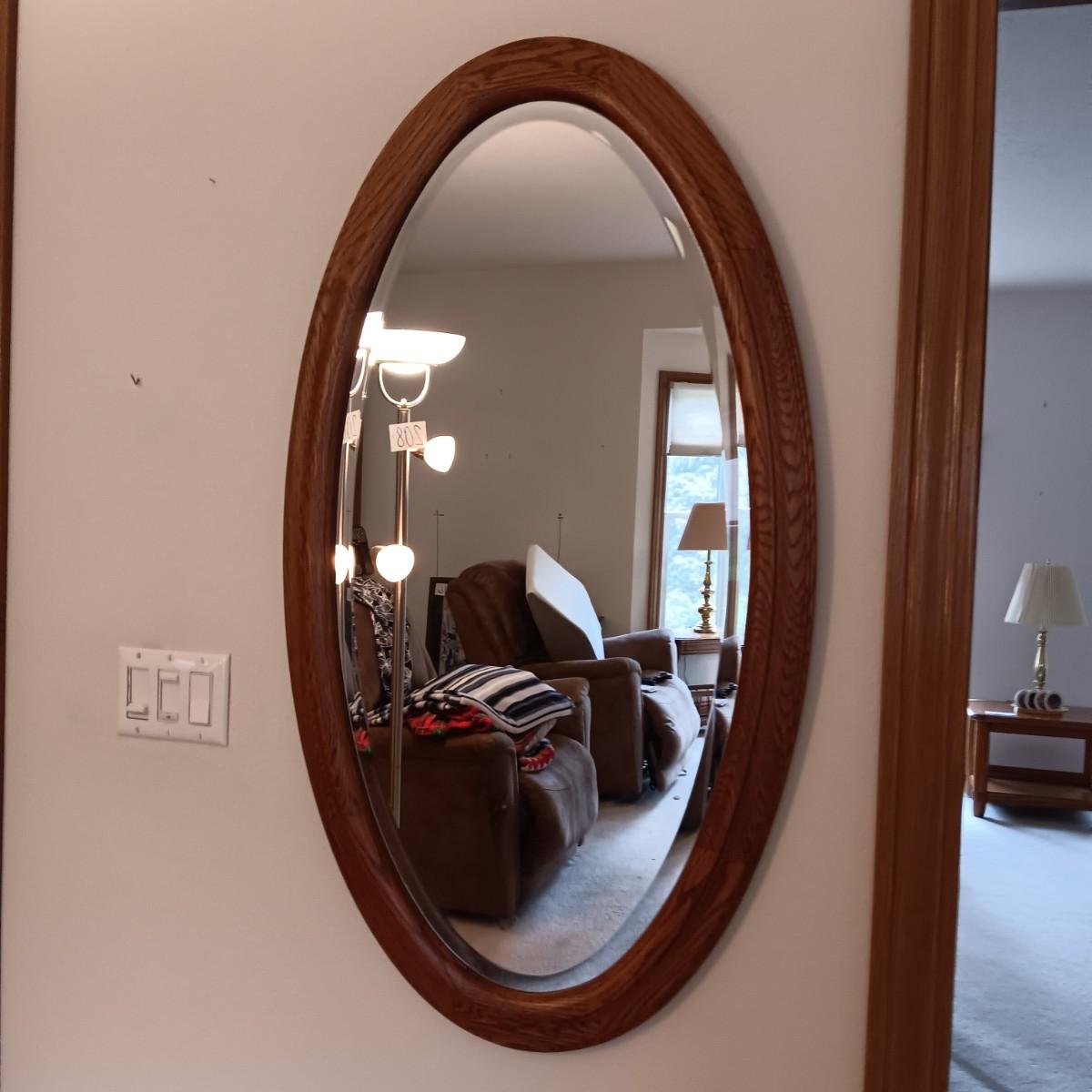 BEVELED OVAL WALL MIRROR WITH WOODEN FRAME