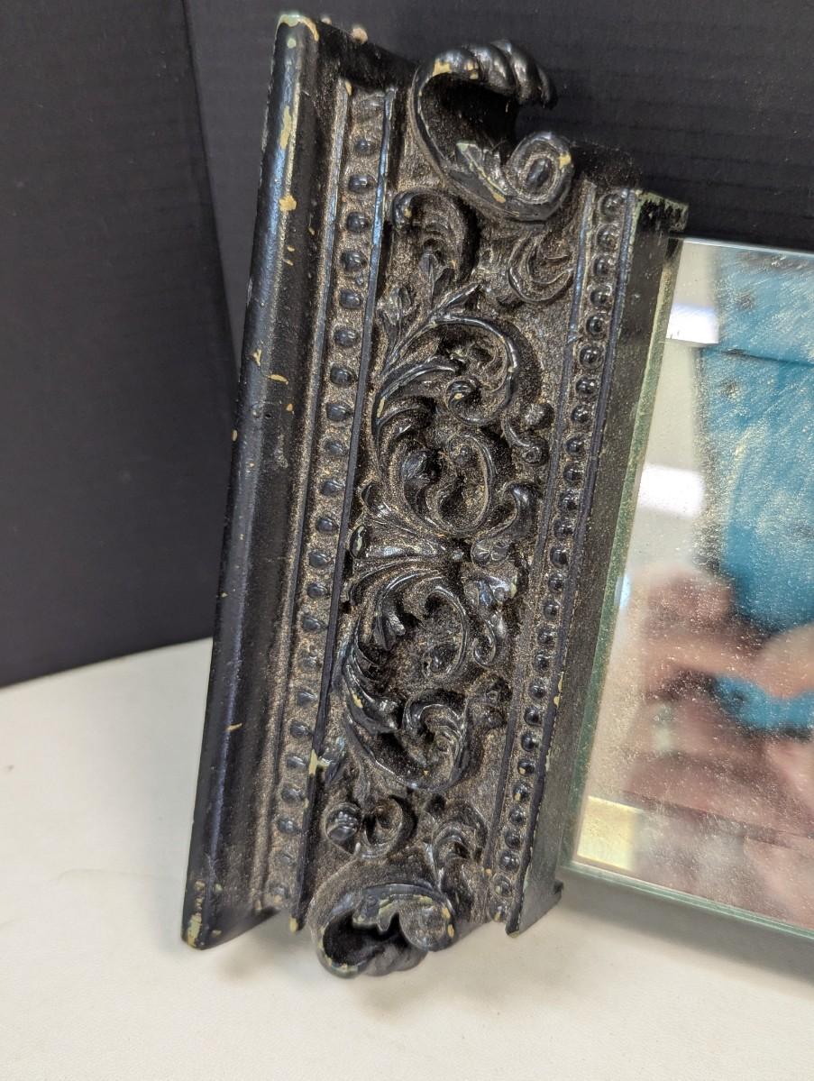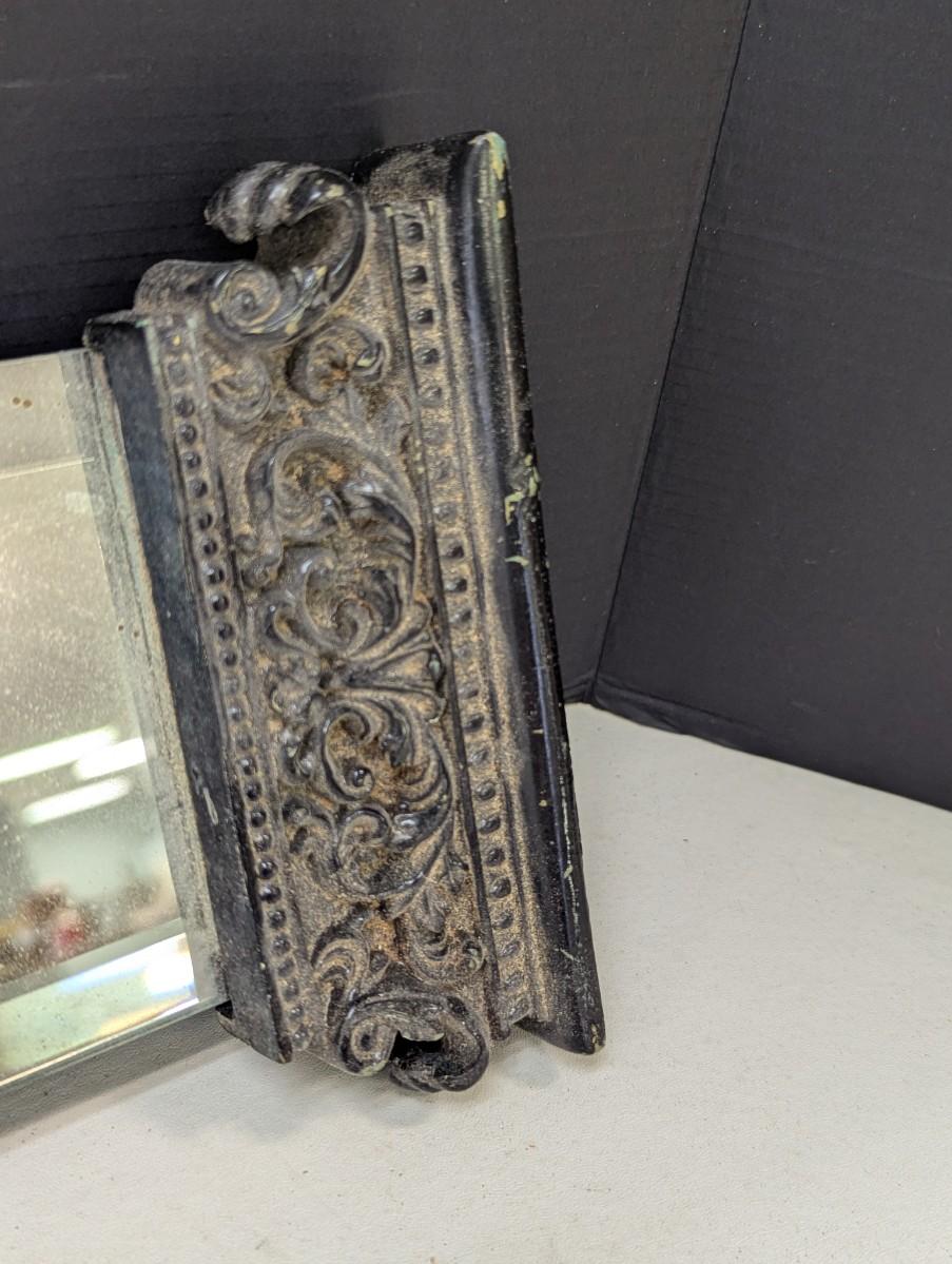 Beveled Wall Mirror With Scrolled Ornate Column Hollywood Regency