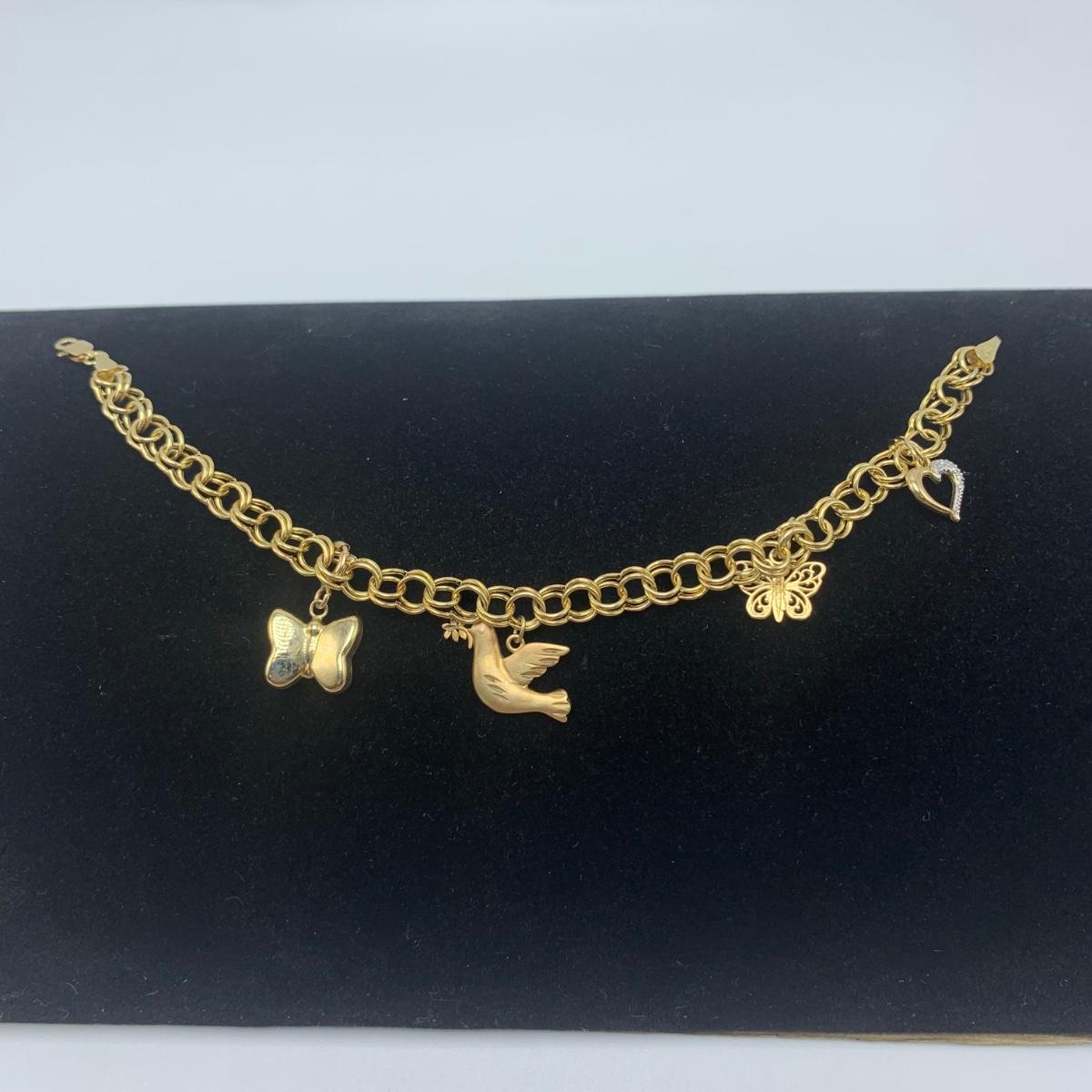 Beverly Hills Gold 7” 14K gold heart bracelet and 6” 14K gold charm bracelet. The three flat charms are marked 14K, but the 3D elephant has no known markings. Both bracelets are stamped 14K. Please see photos for more details and other markings. All sales are final. No returns or refunds. Please bid accordingly.