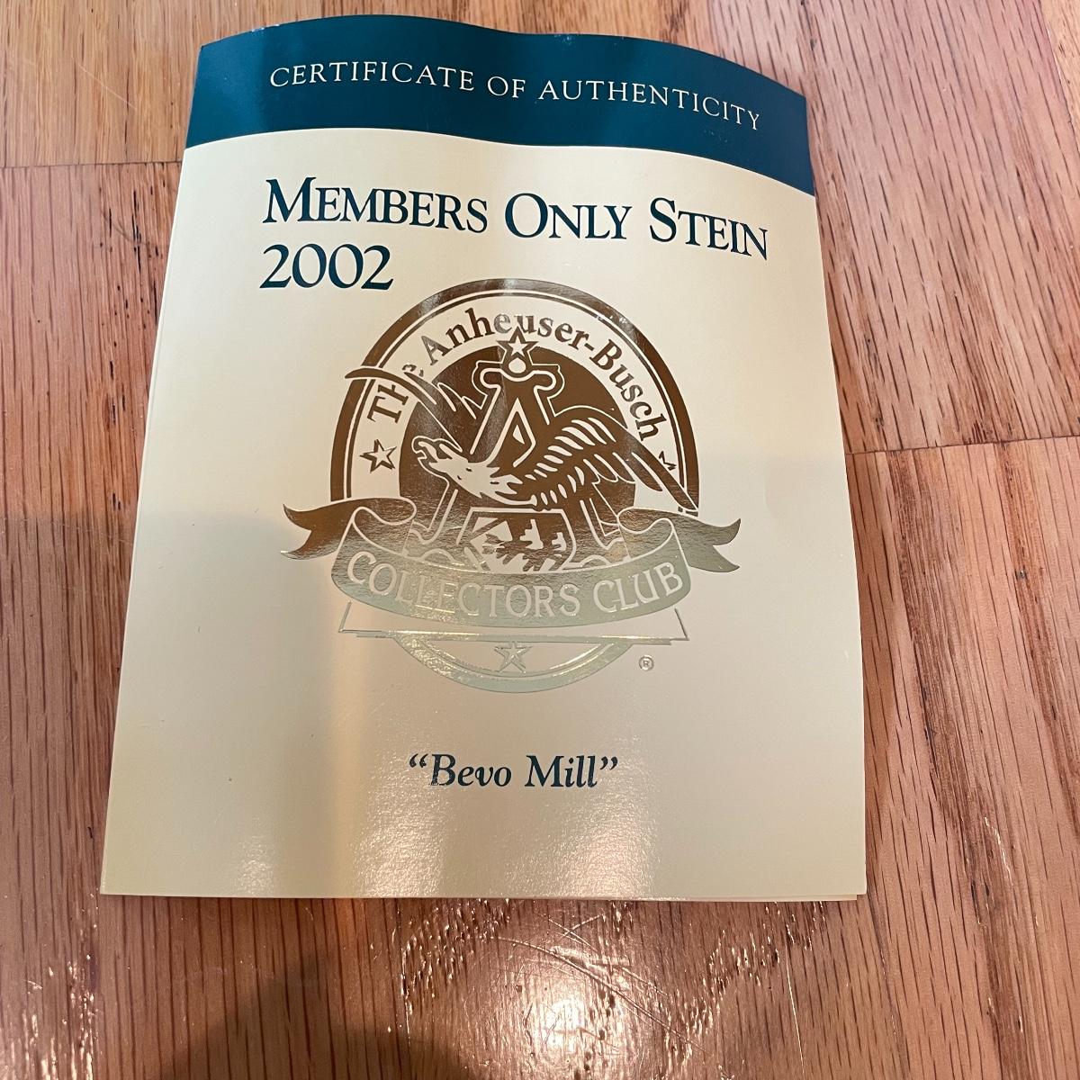 Bevo Mill 2002 Stein w/COA (LR - SS)