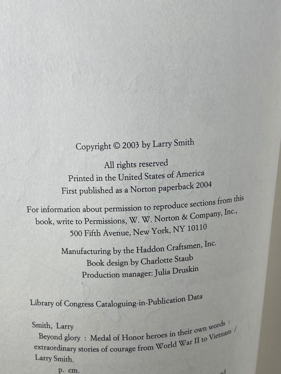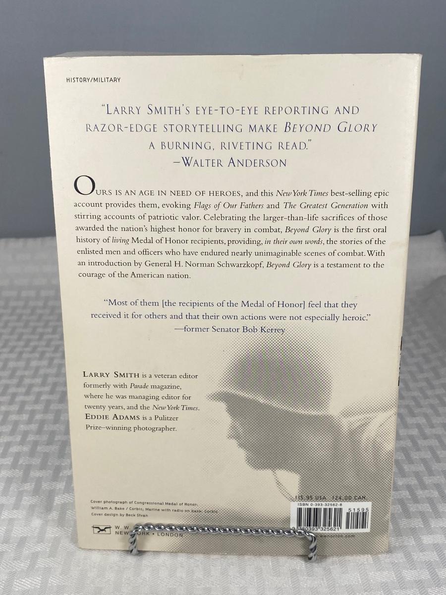 Beyond Glory Medal of Honor Heroes in Their Own Words. Book has been signed by author and was given to previous owner that was a Medal of Honor recipient. Also a small note included in the book. Good condition.