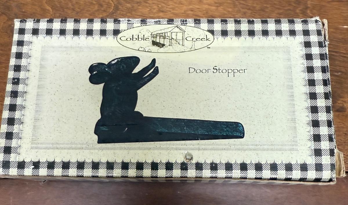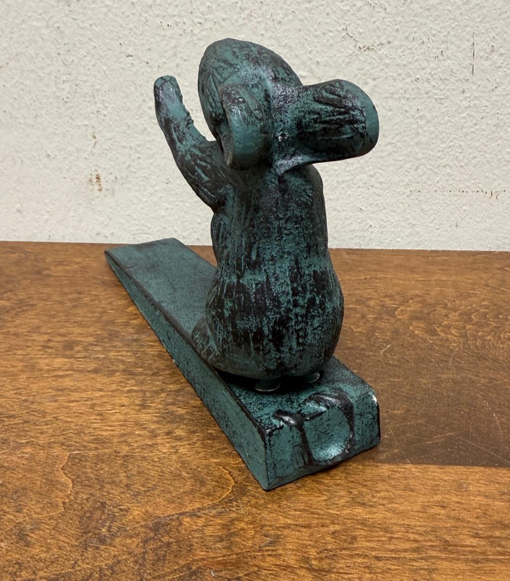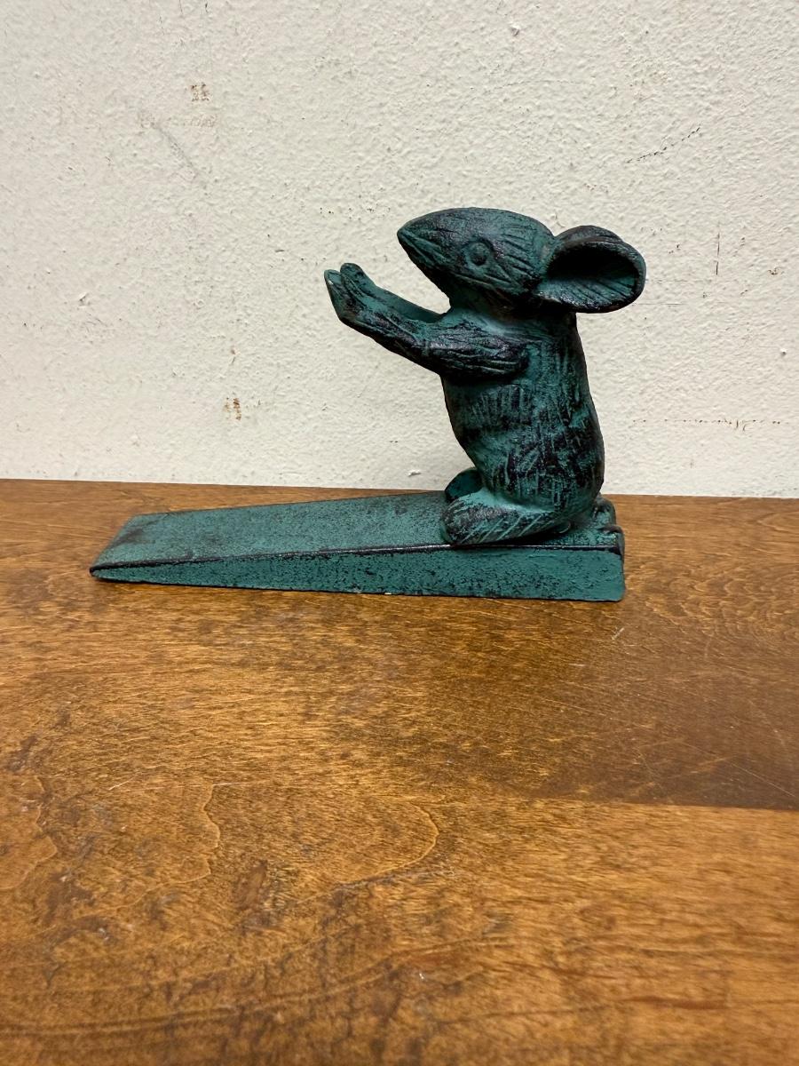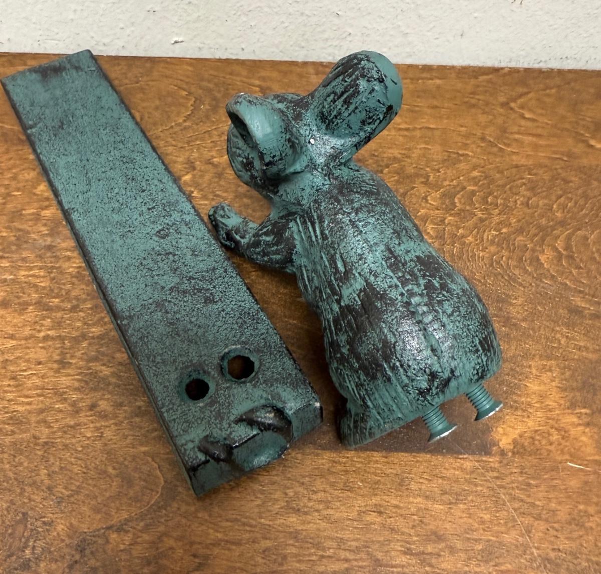 Cast Iron Mouse Door Stop Wedge Figural Blue-Green Finish