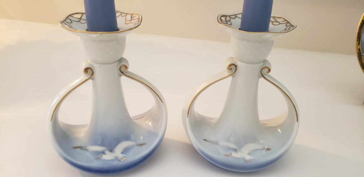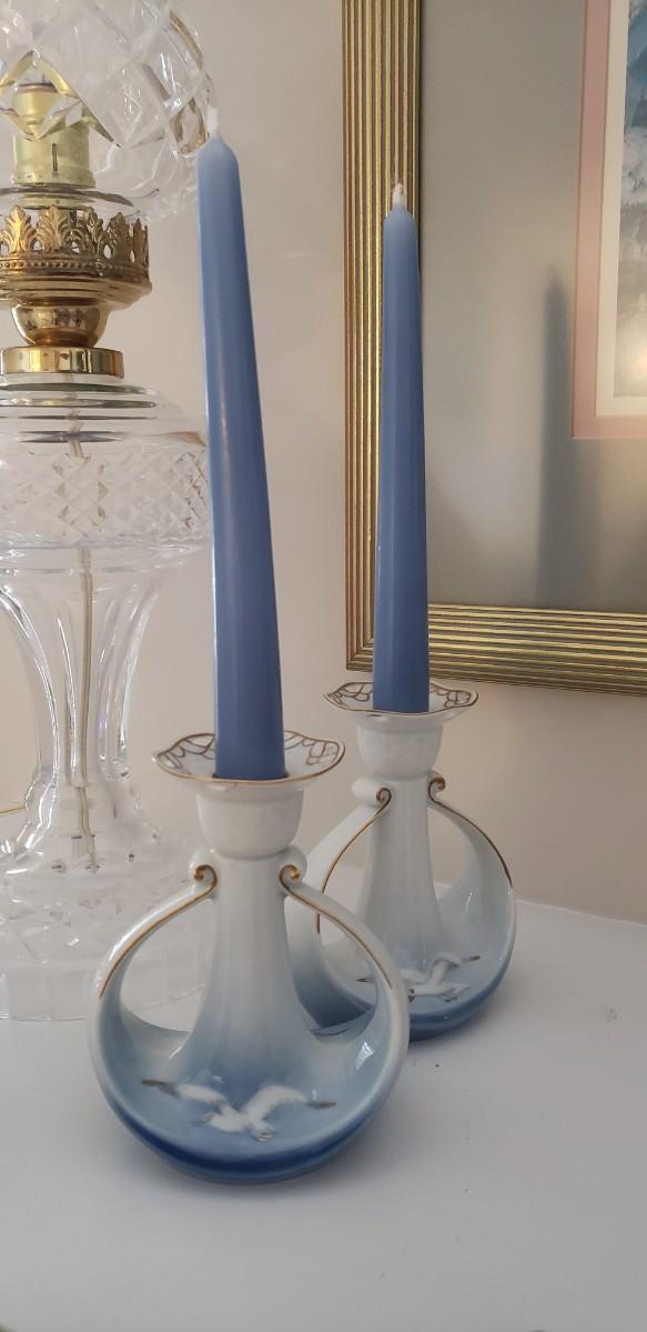 Very unique candlestick holders with candles.