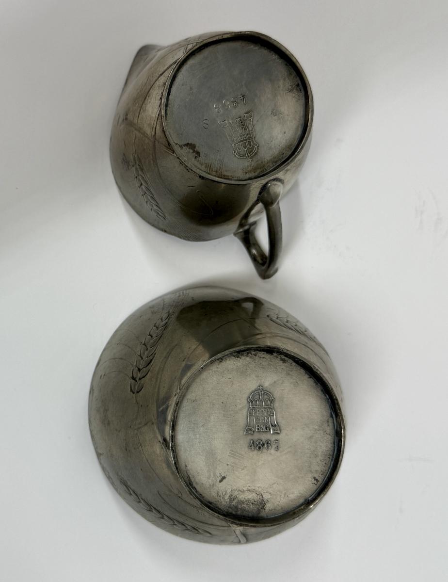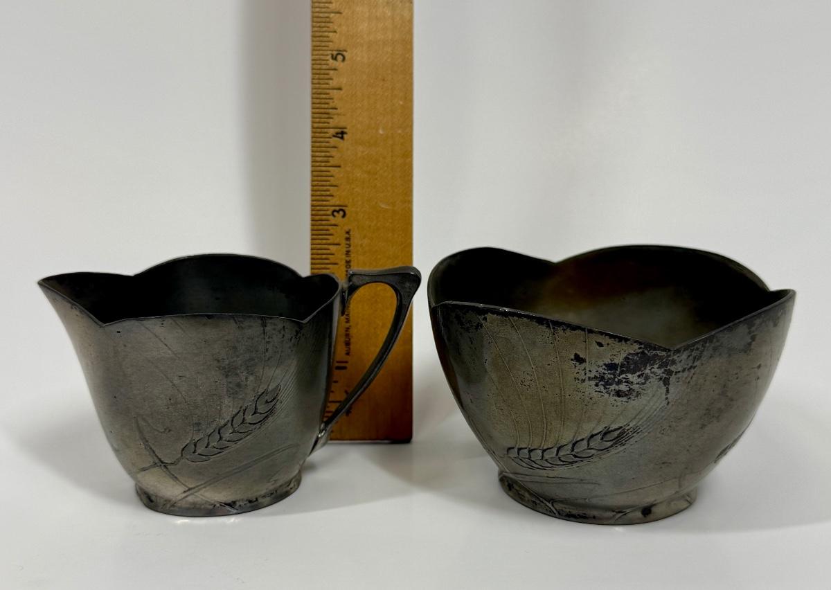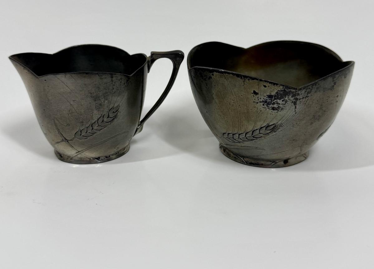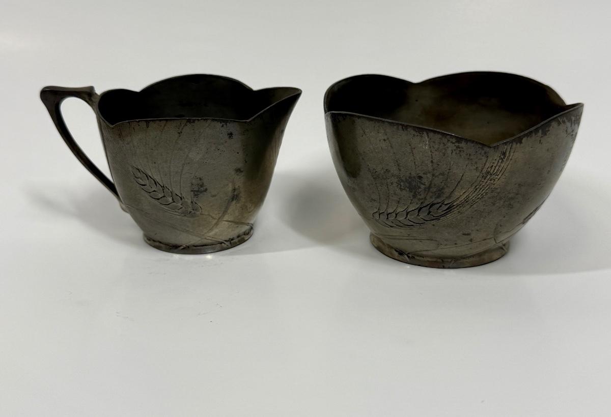 BG Imperial Antique Art Deco Pewter Brutalist German Studio Cream and Sugar