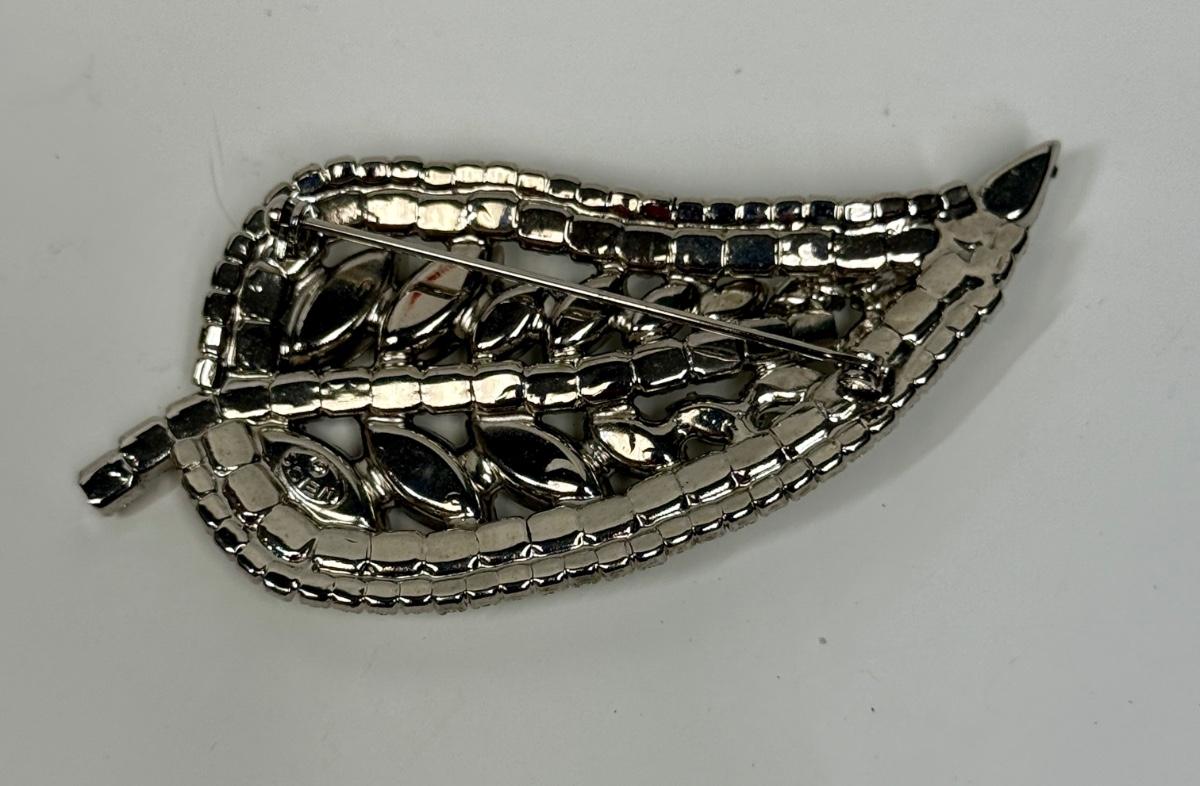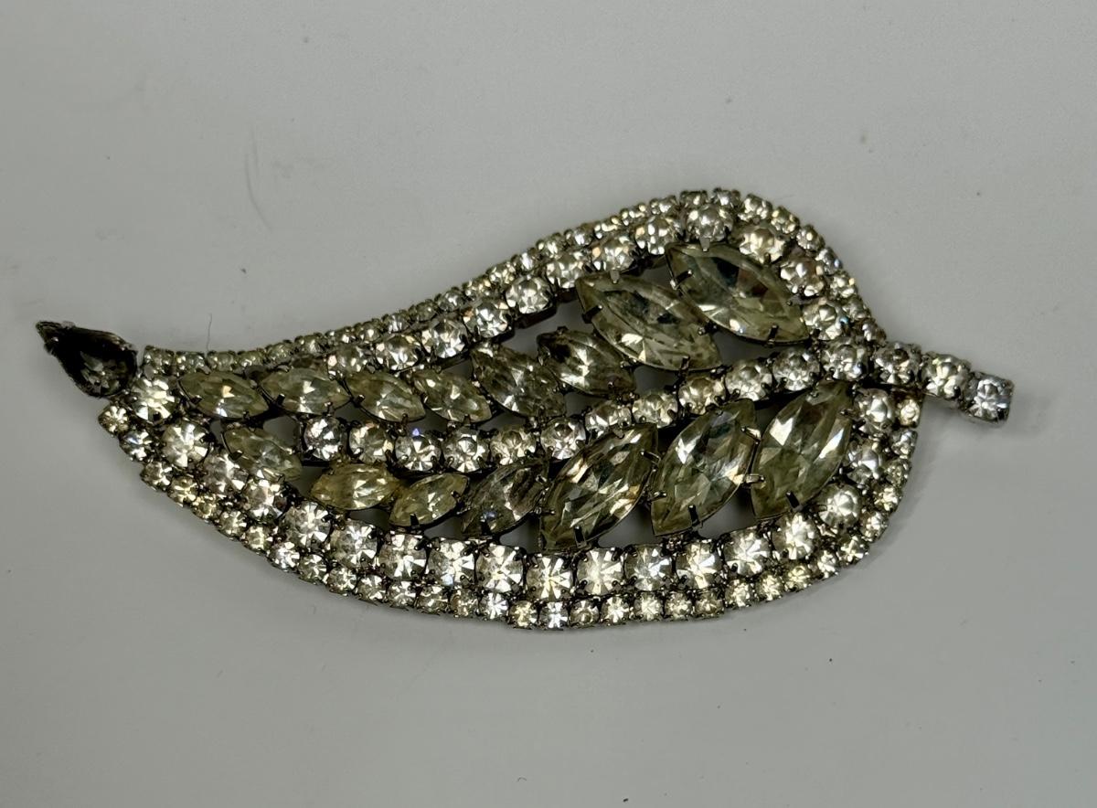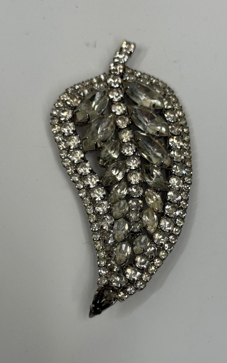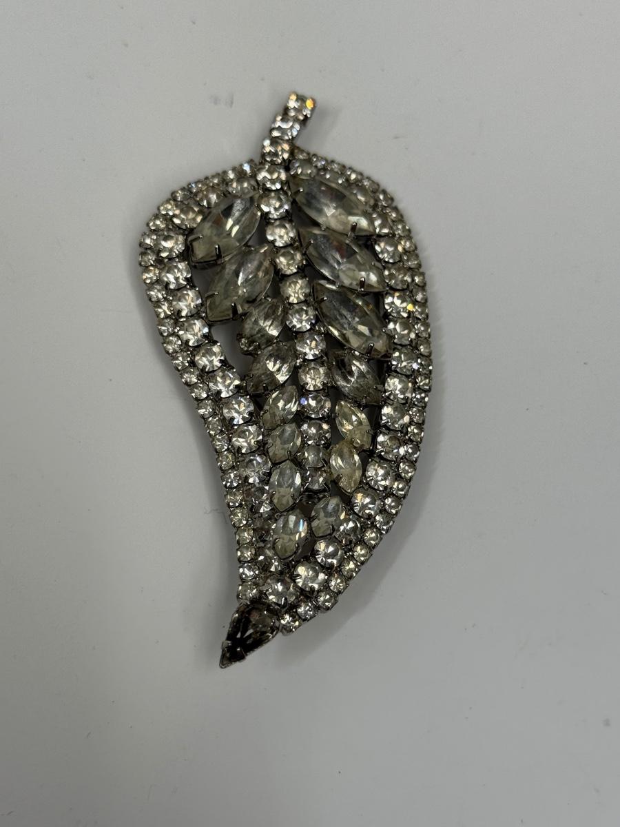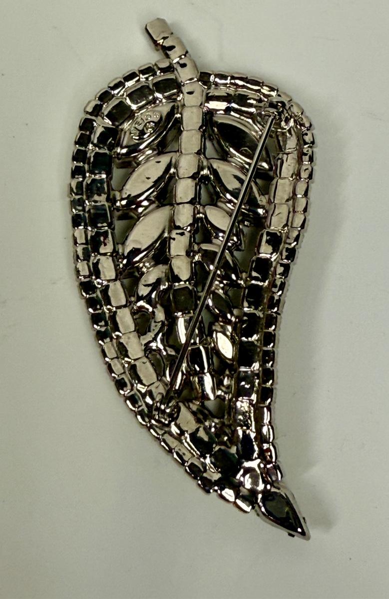 Vintage Weiss Rhinestone Leaf Brooch, missing one stone