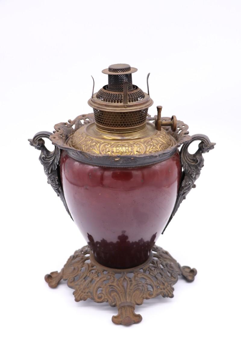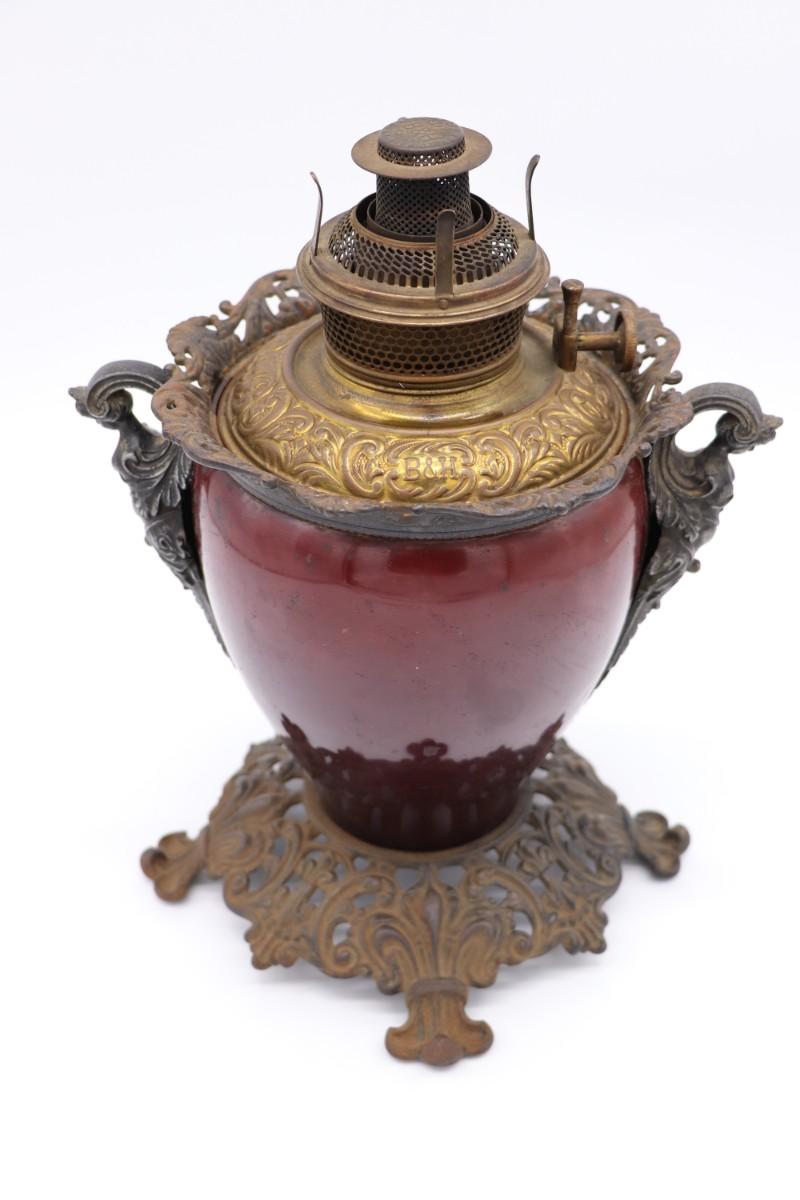 B&H Antique Kerosene Lamp in Art Nouveau Style Circa 1890s