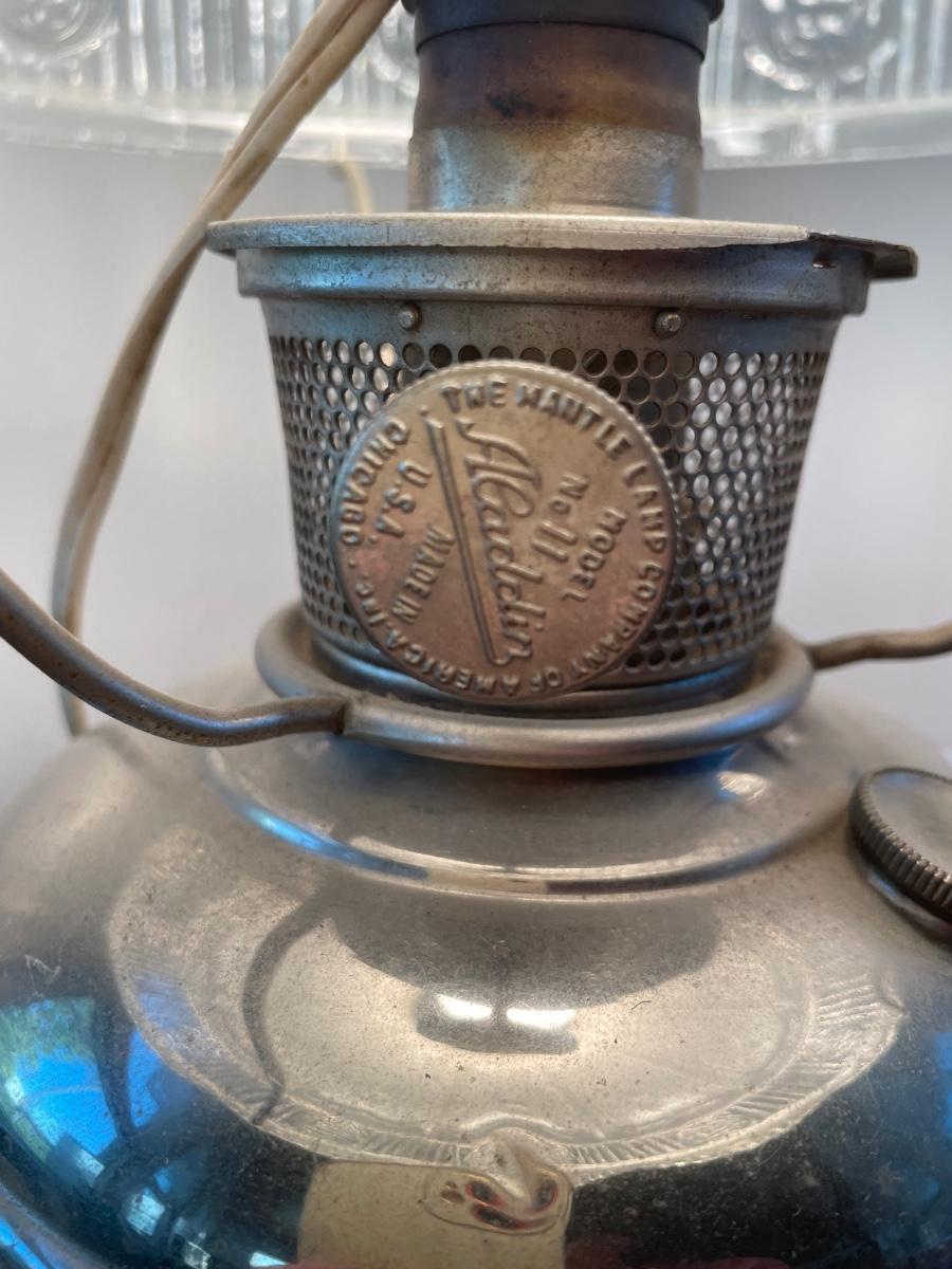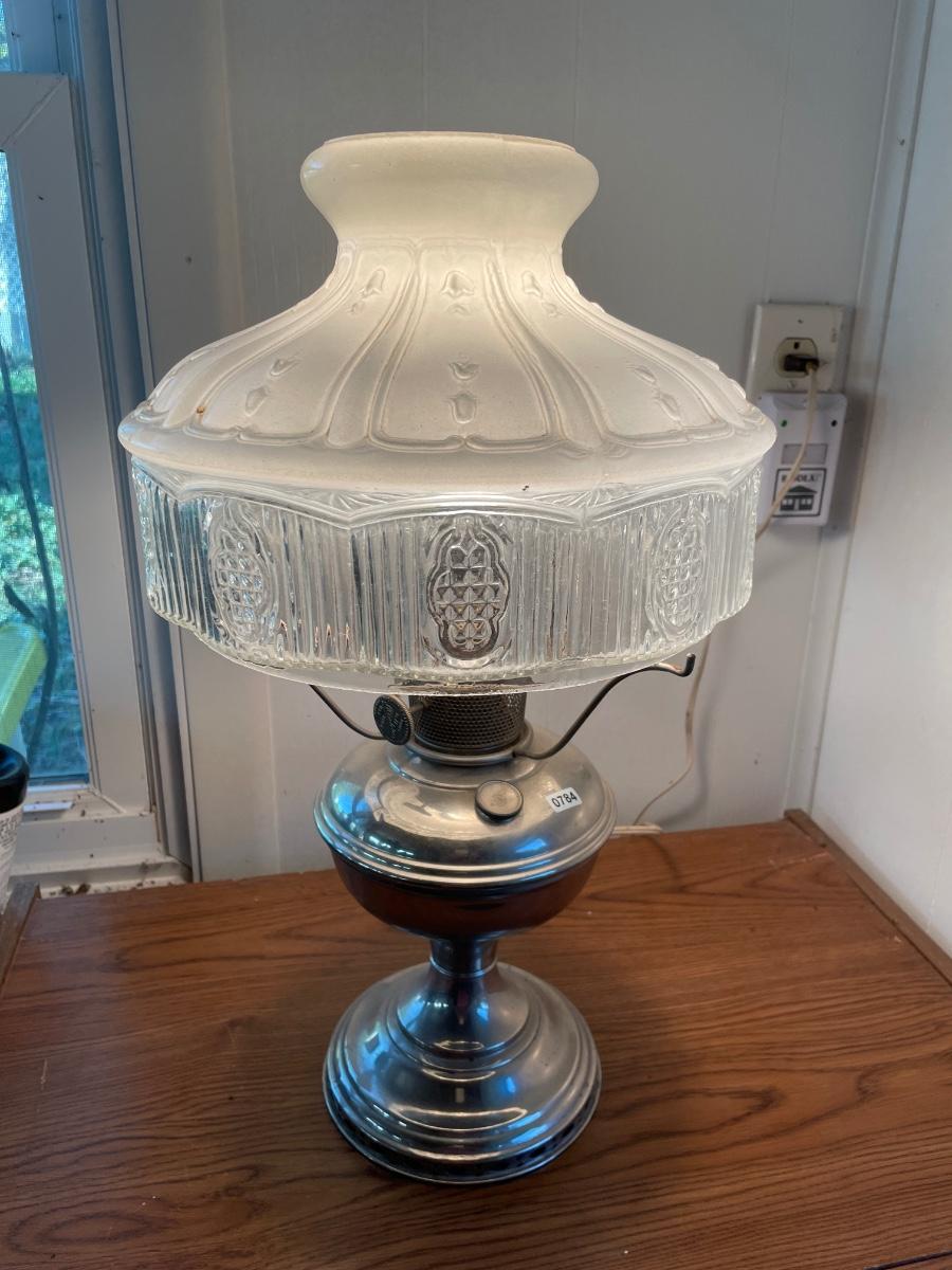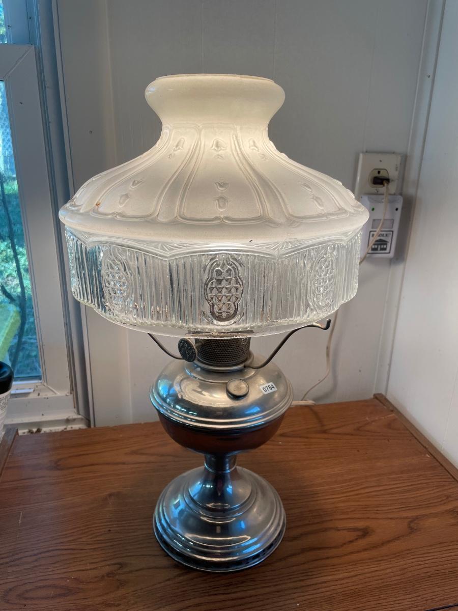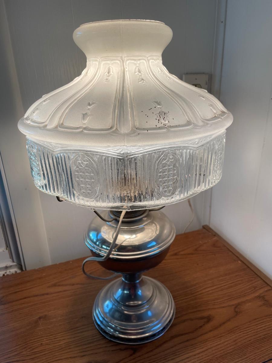 B&H Bradley Hubbard converted oil lamp w/frosted shade