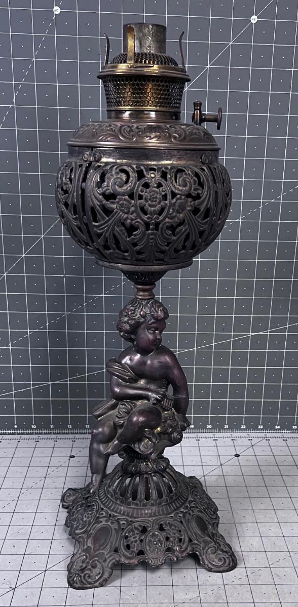 B&H Bradley & Hubbard Victorian Oil Lamp Cherub c. 1870