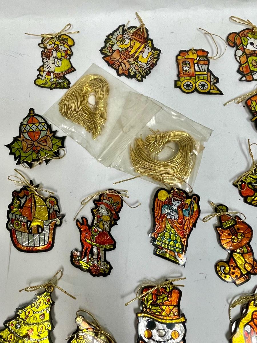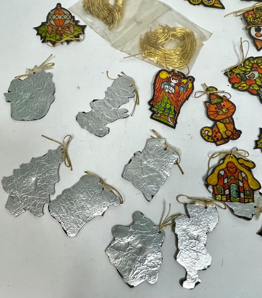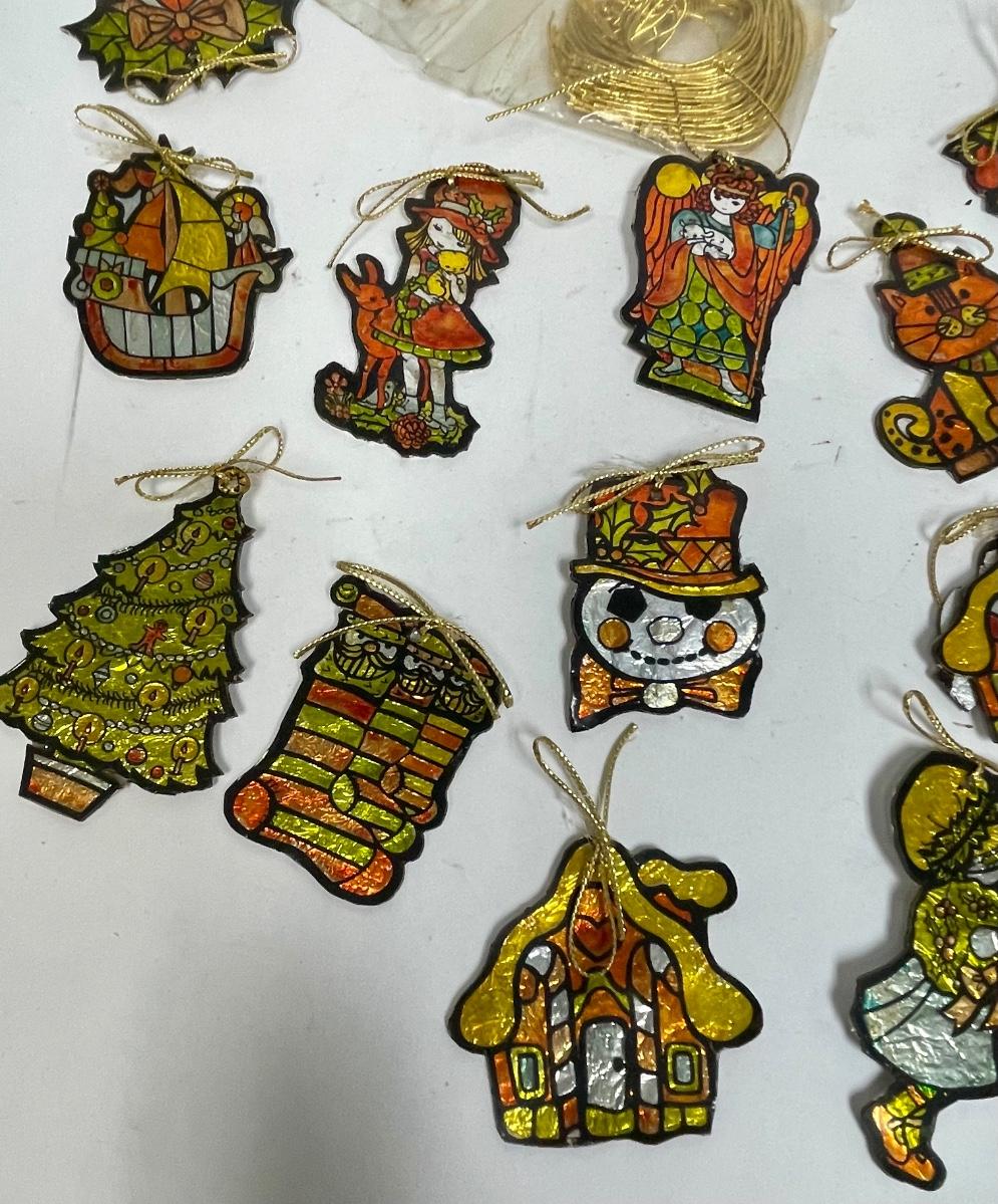 Vintage Handmade Ornaments Foil like stained glass & extra gold twine