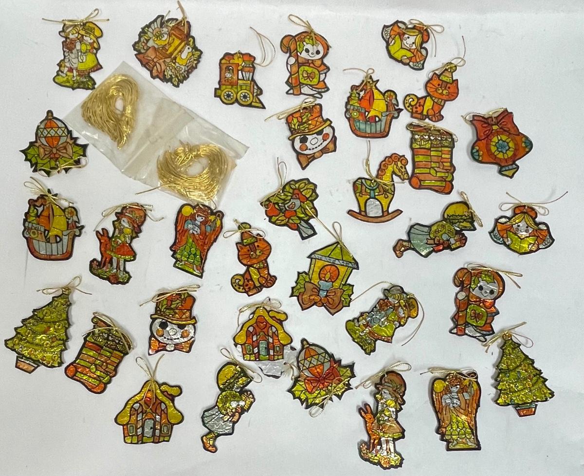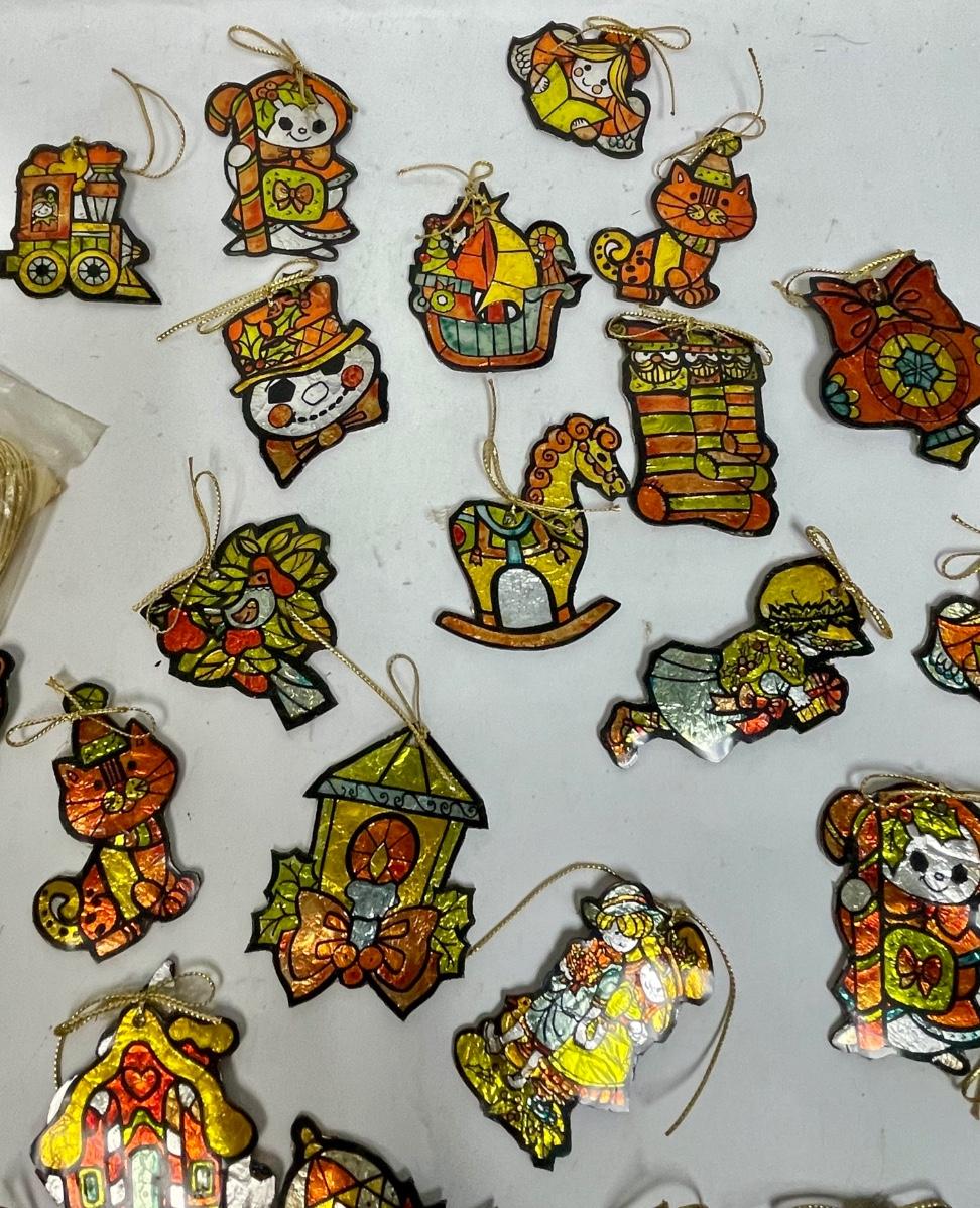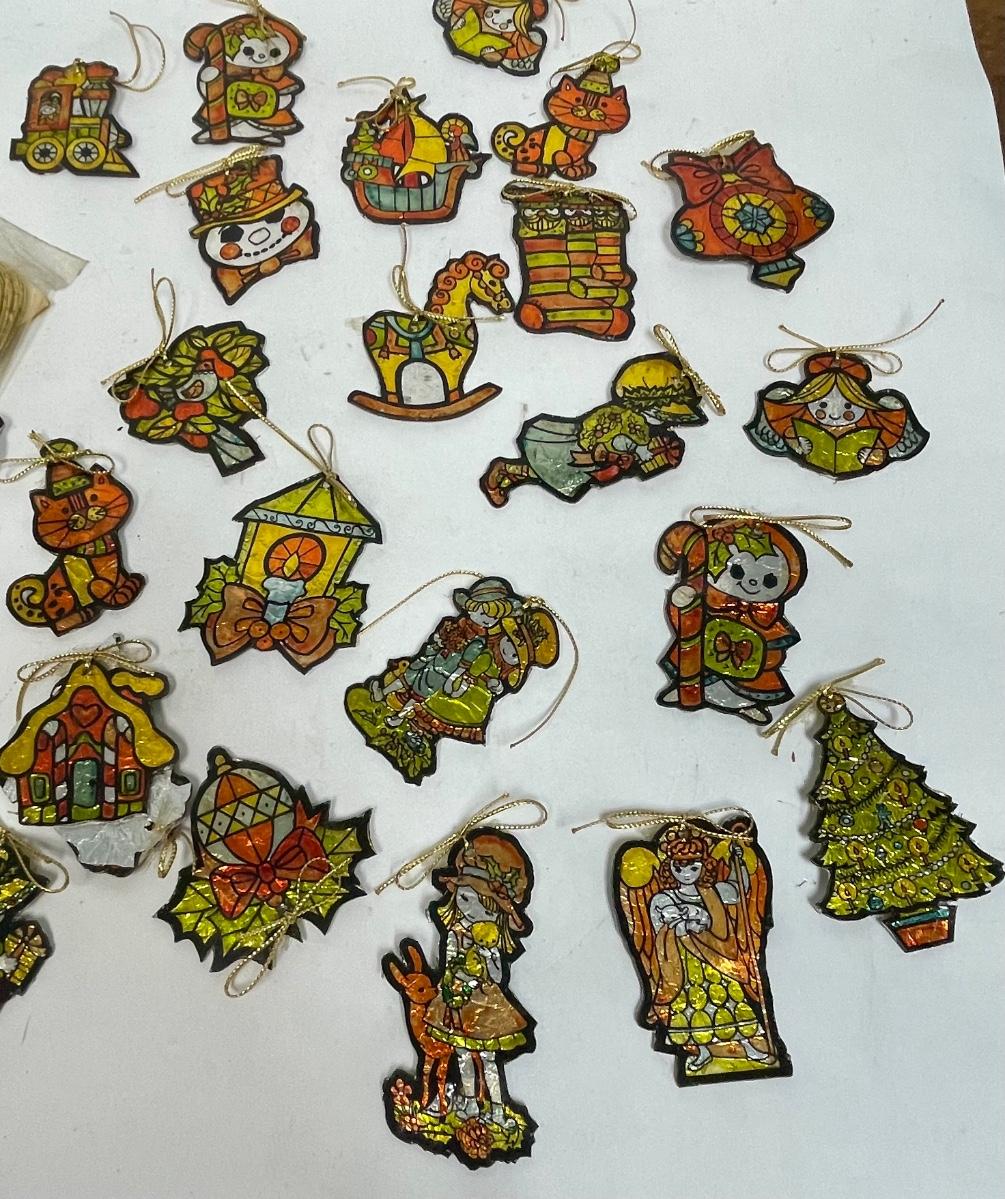 Vintage Handmade Ornaments Foil like stained glass & extra gold twine